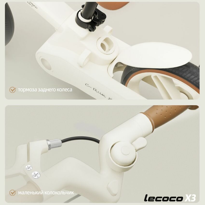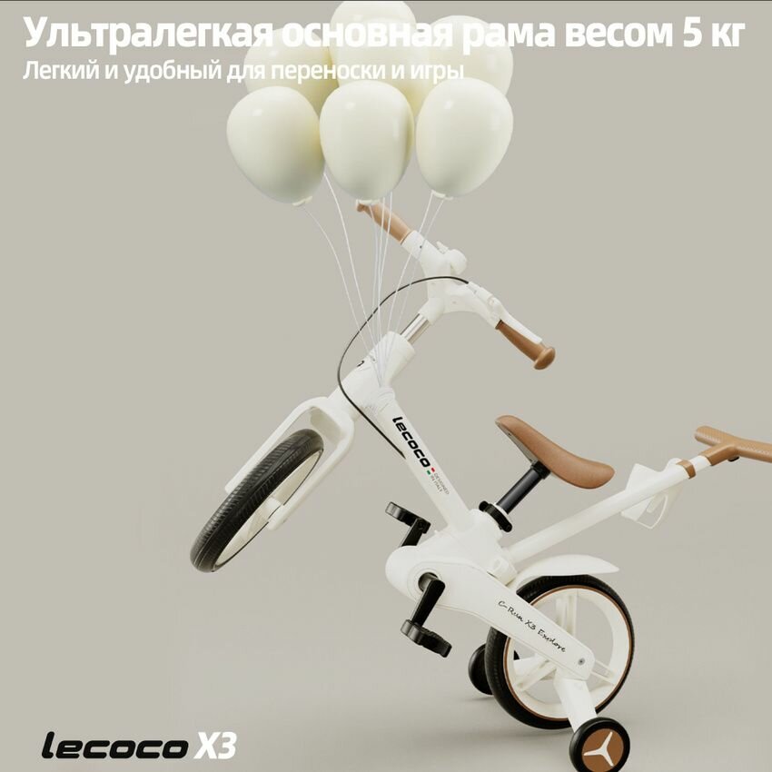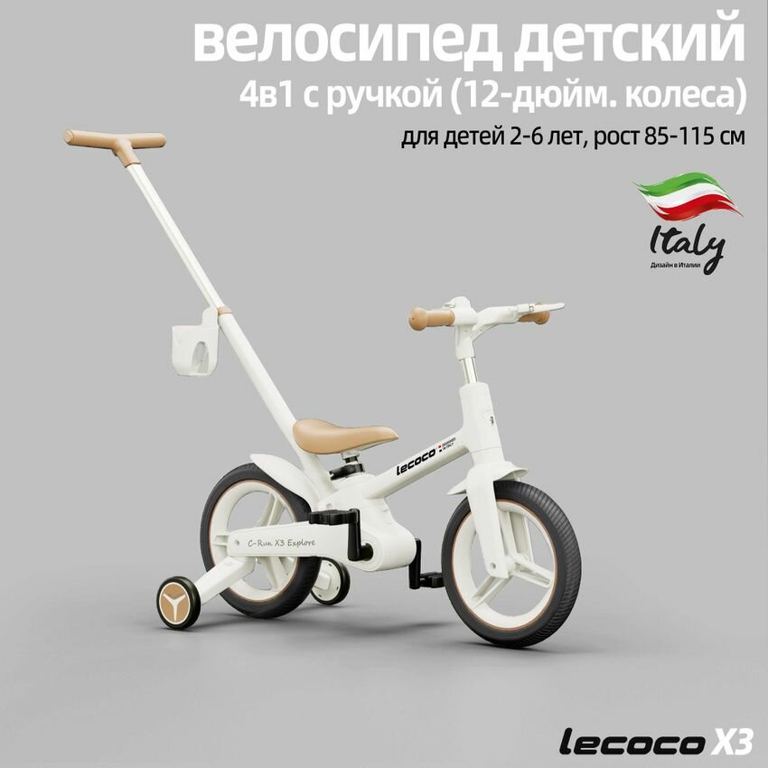 Велосипед детский, 4в1 с родительской ручкой, LECOCO X3, 12-дюймовые колеса, ледниковый белый интересное: