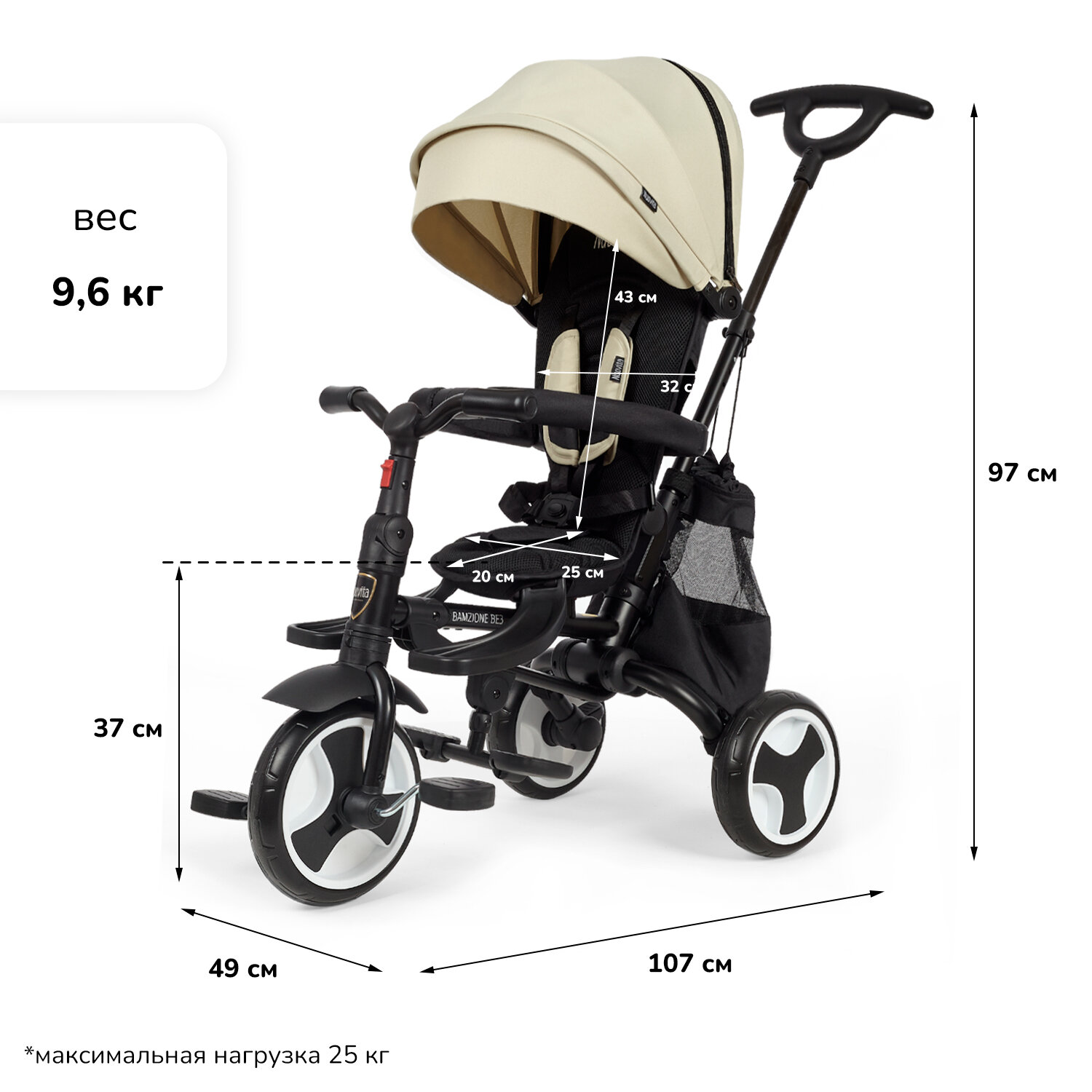 Трехколесный велосипед Nuovita Bamzione BE3 (Pale Dogwood/Кремовый)