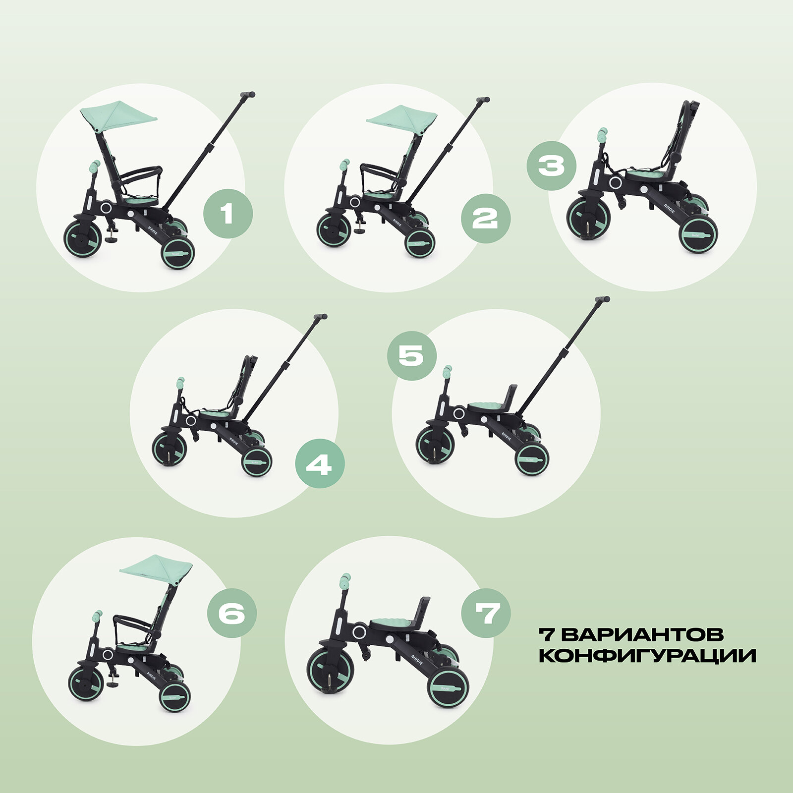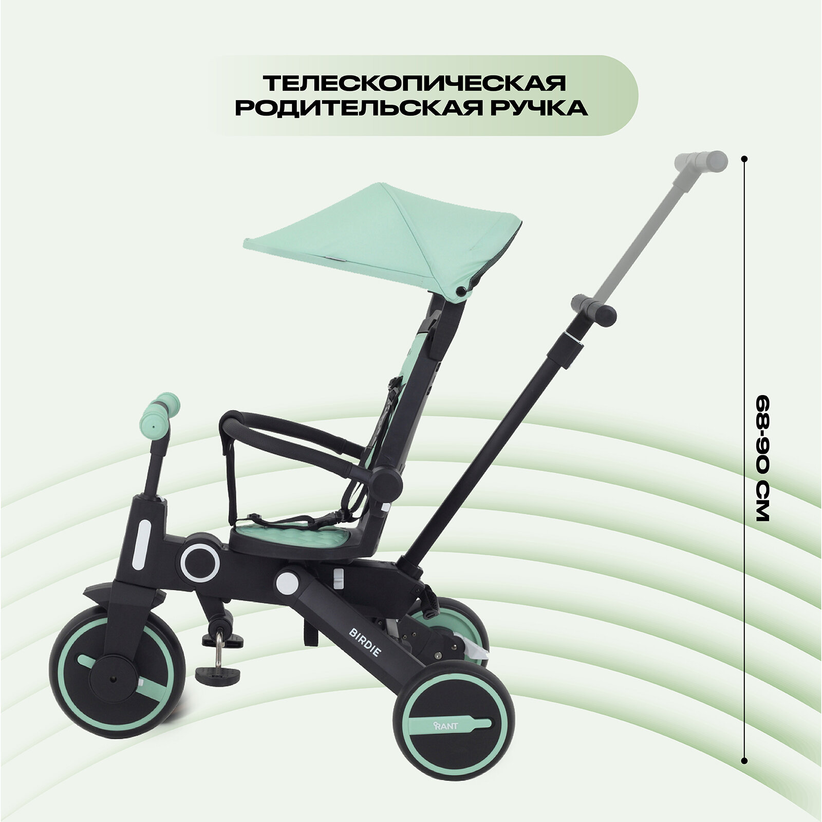 Купить Детский складной трехколесный велосипед с родительской ручкой Rant Birdie Mint