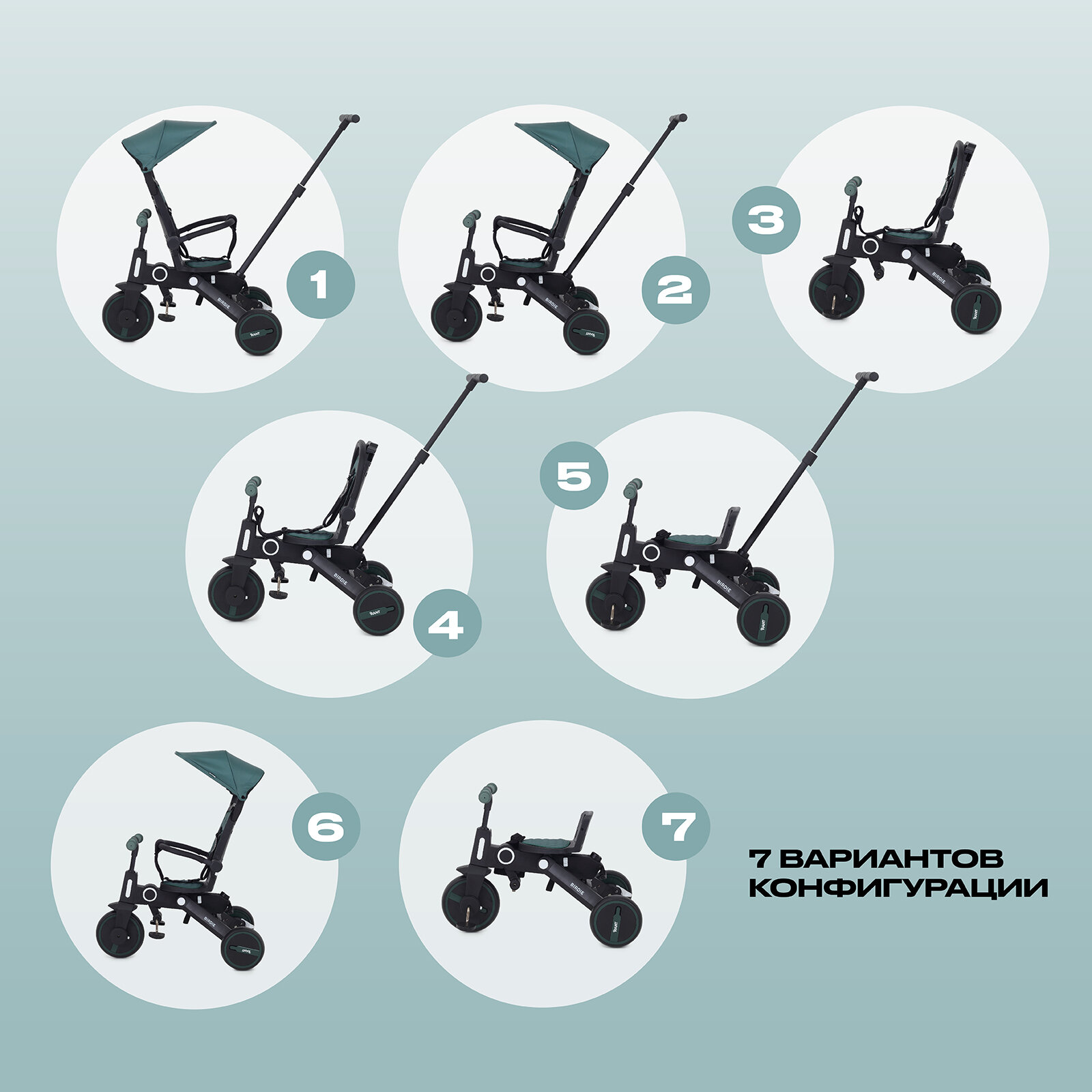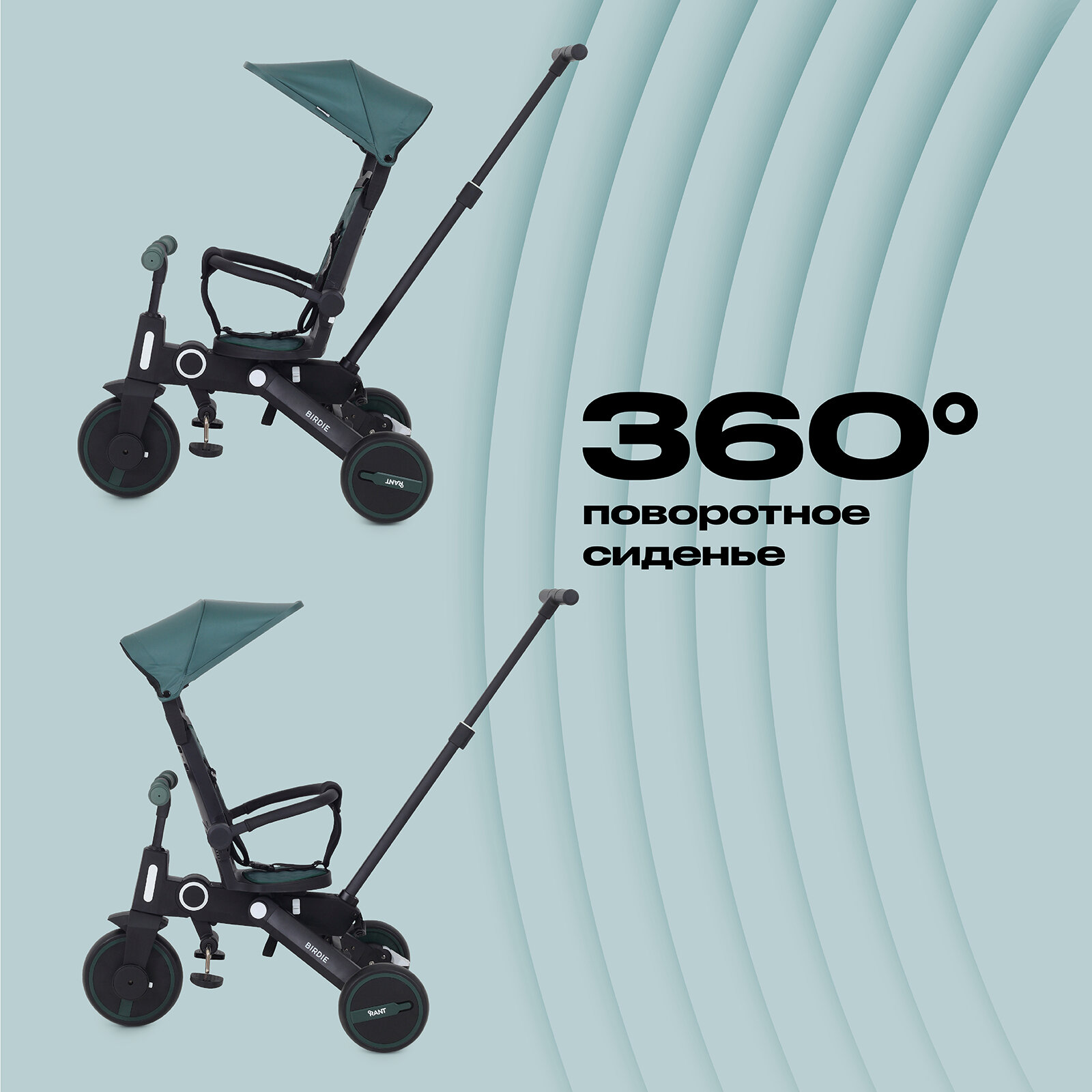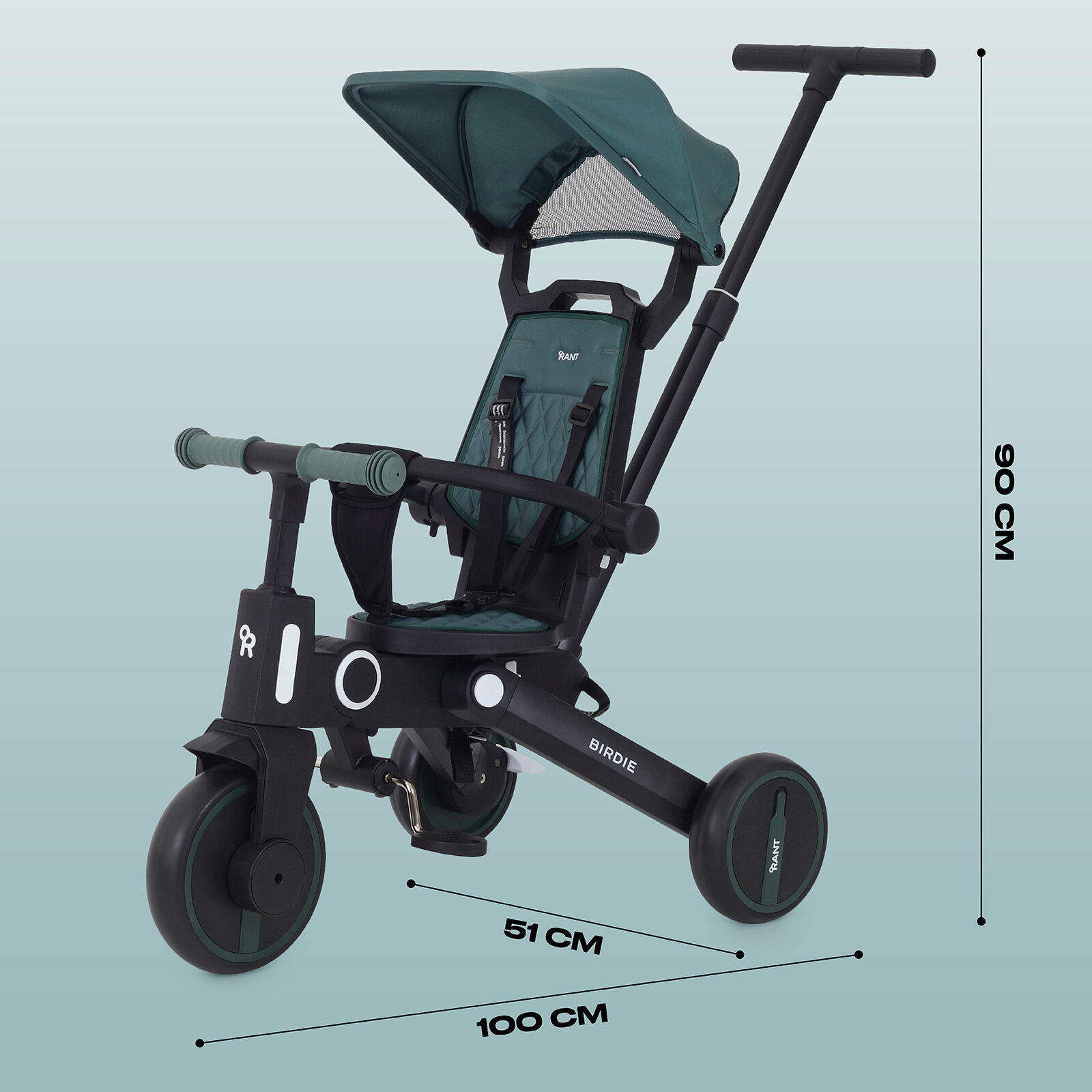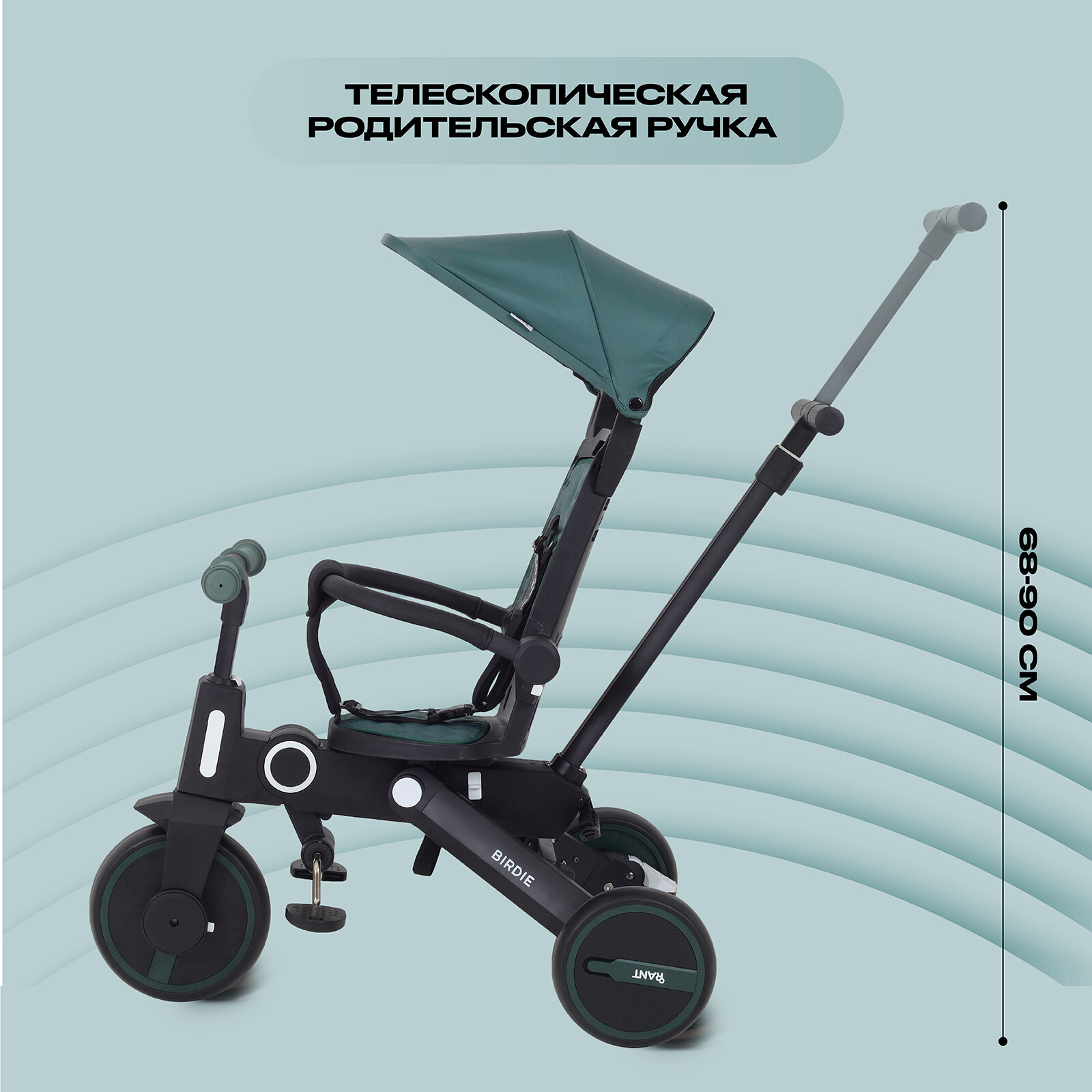 Детский складной трехколесный велосипед с родительской ручкой Rant Birdie Mint