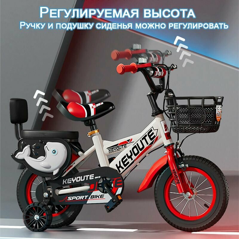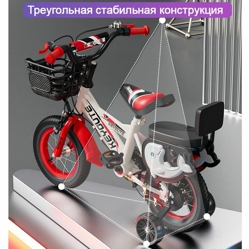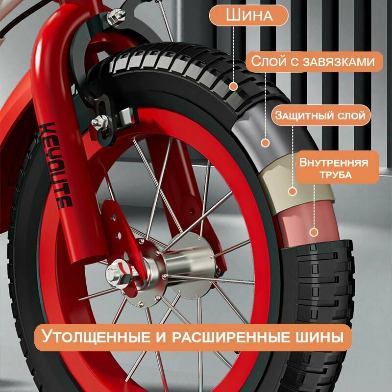 Велосипед детский, двухколесный, алюминиевый сплав/сталь, с боковыми колесами, 10 скоростей