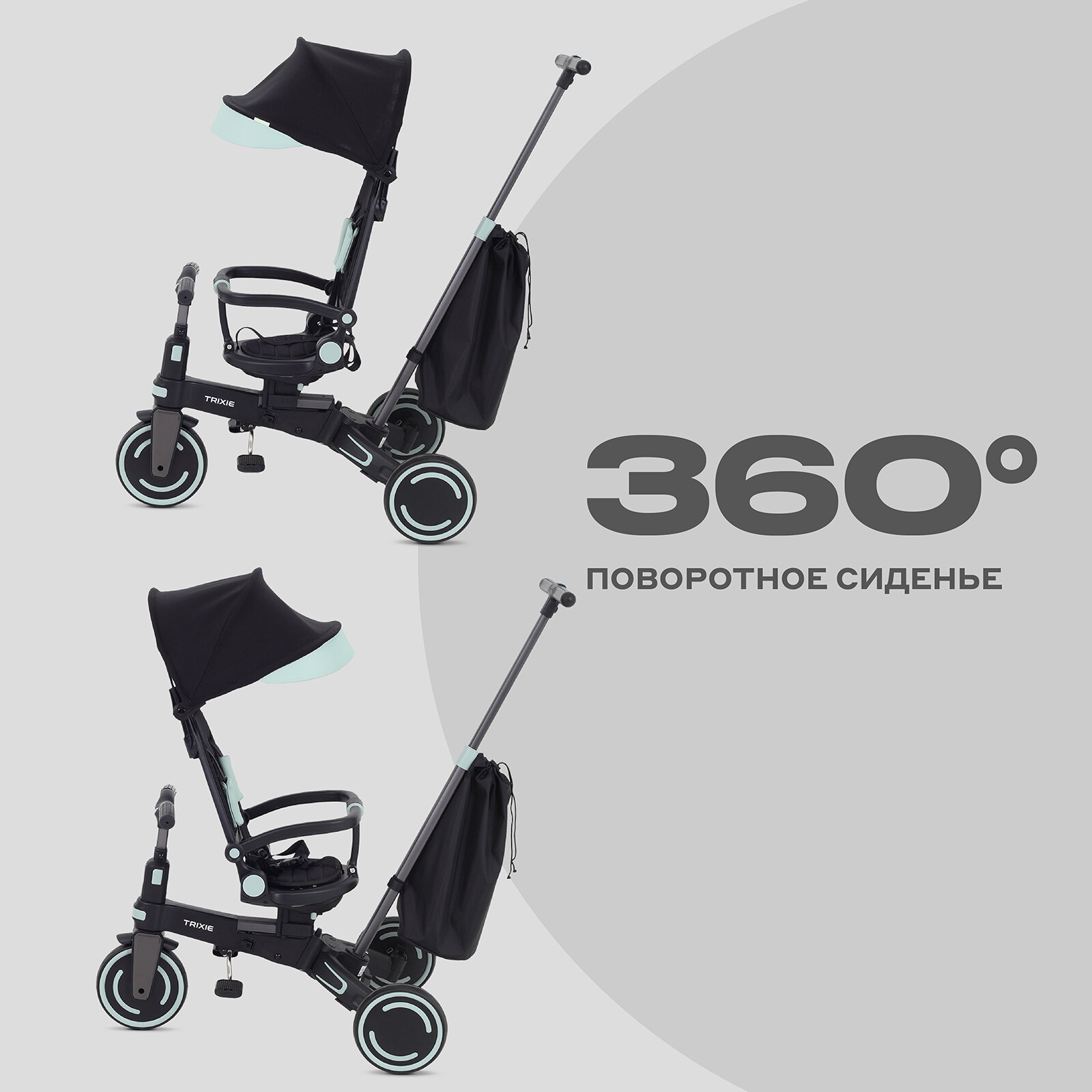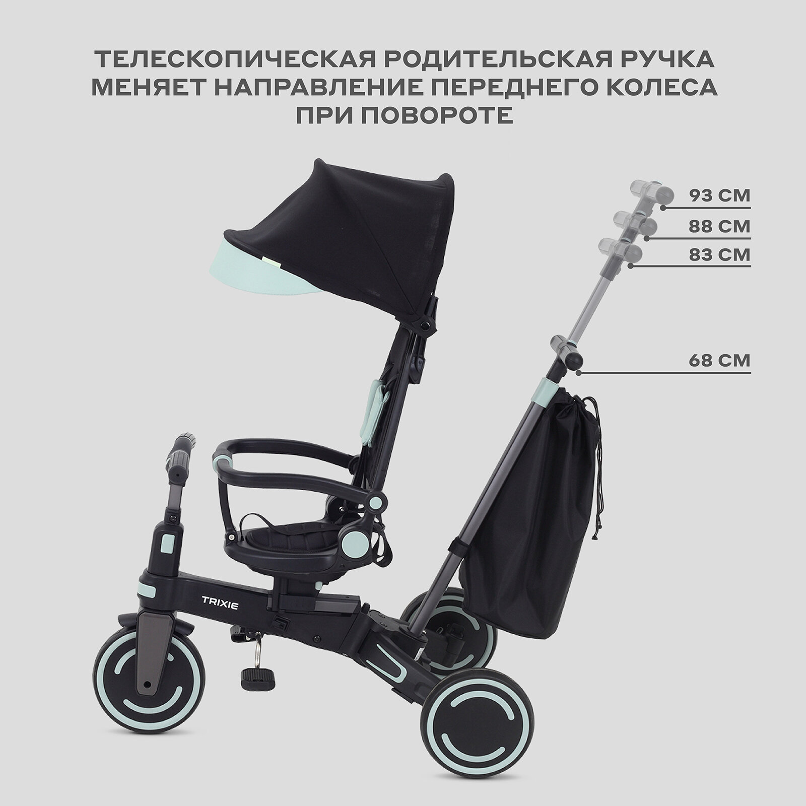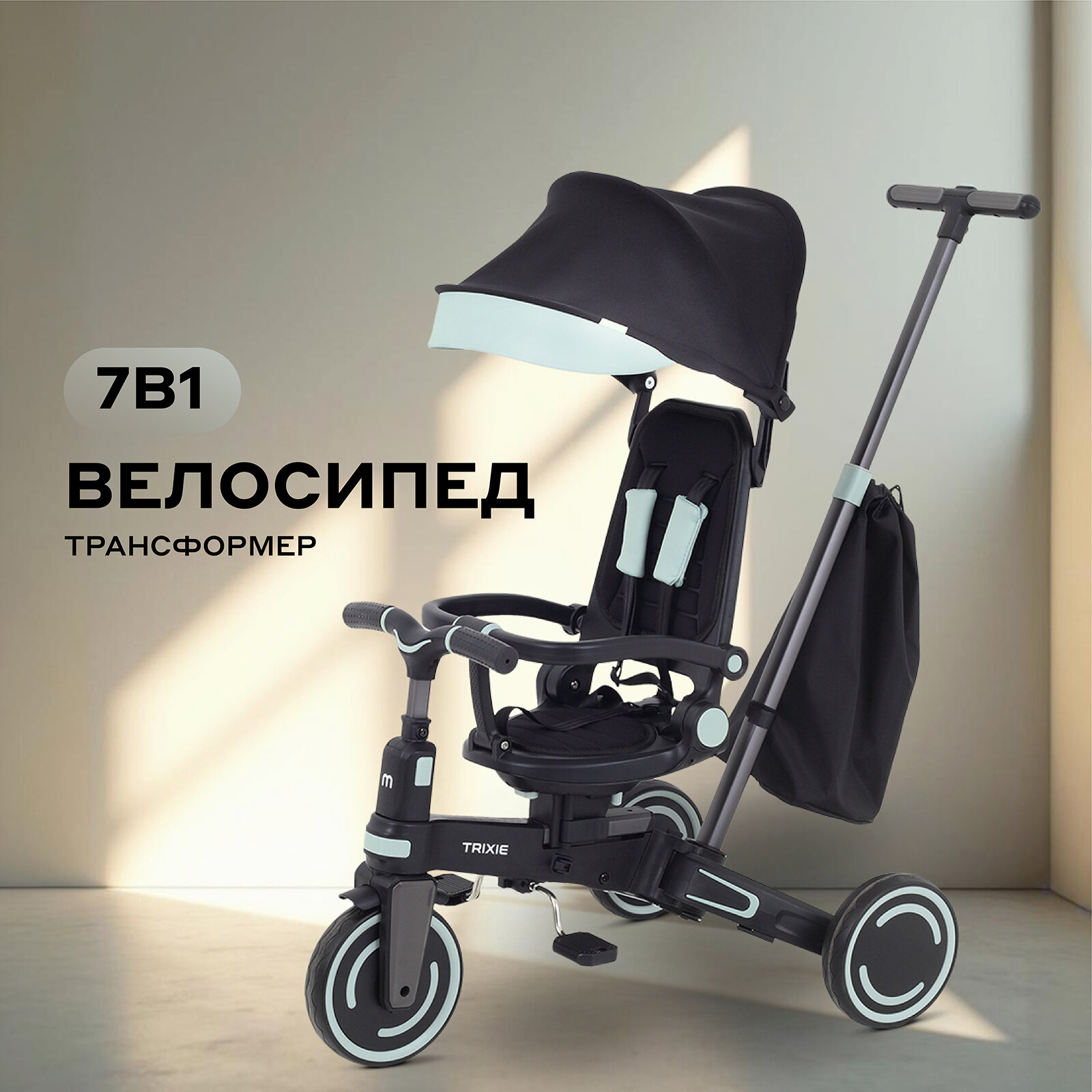Детский трехколесный велосипед MOWBaby Trixie MC055, Black/Green интересное: