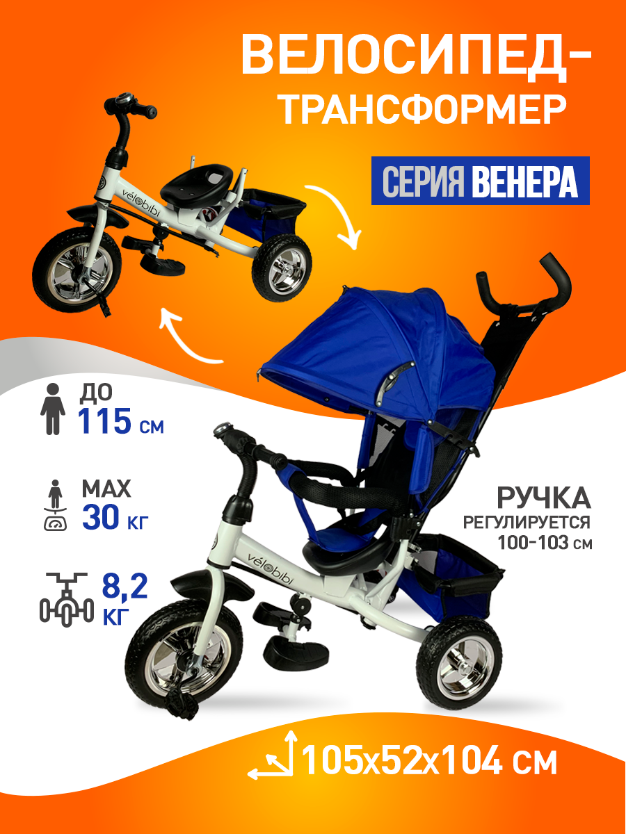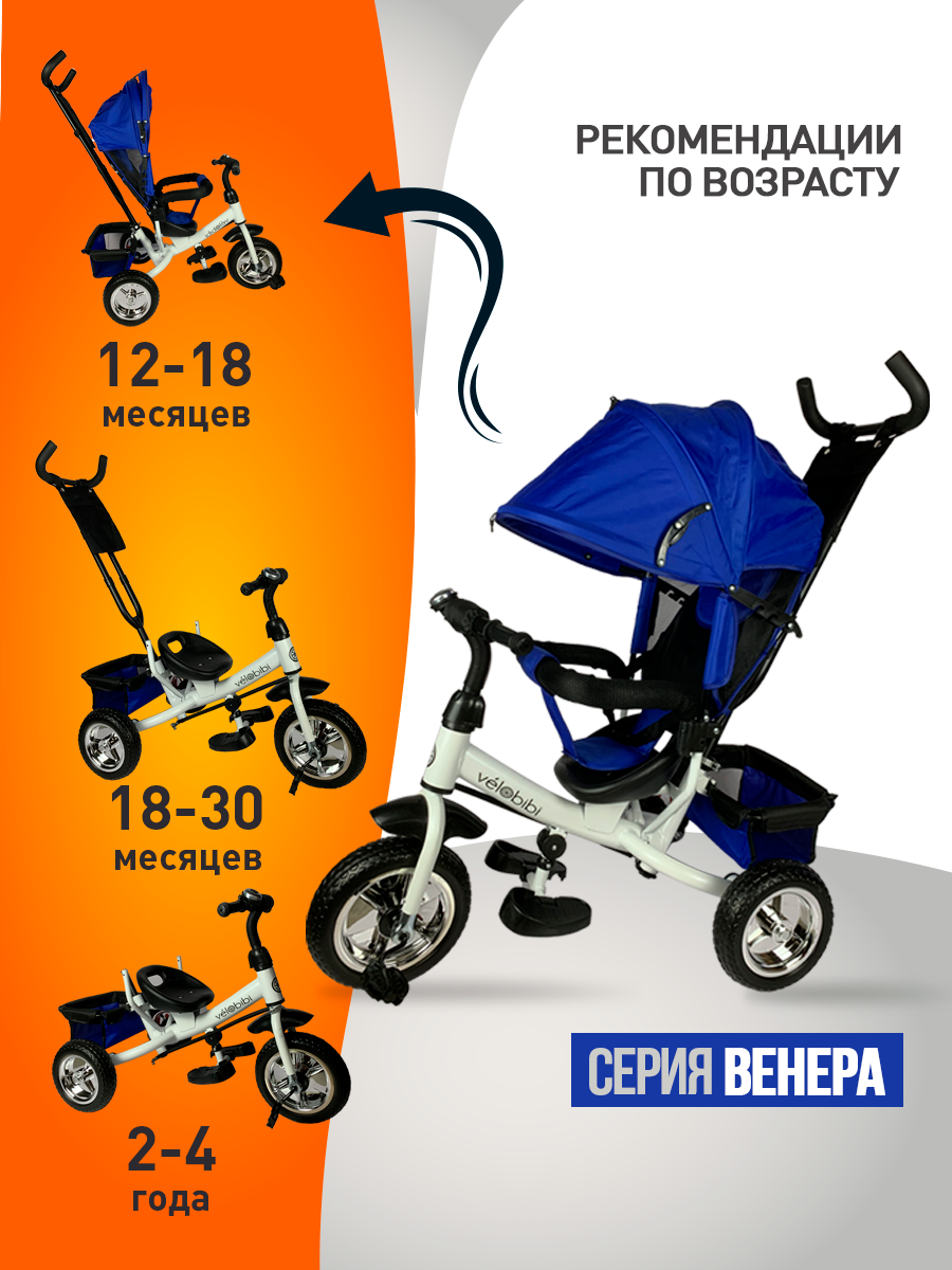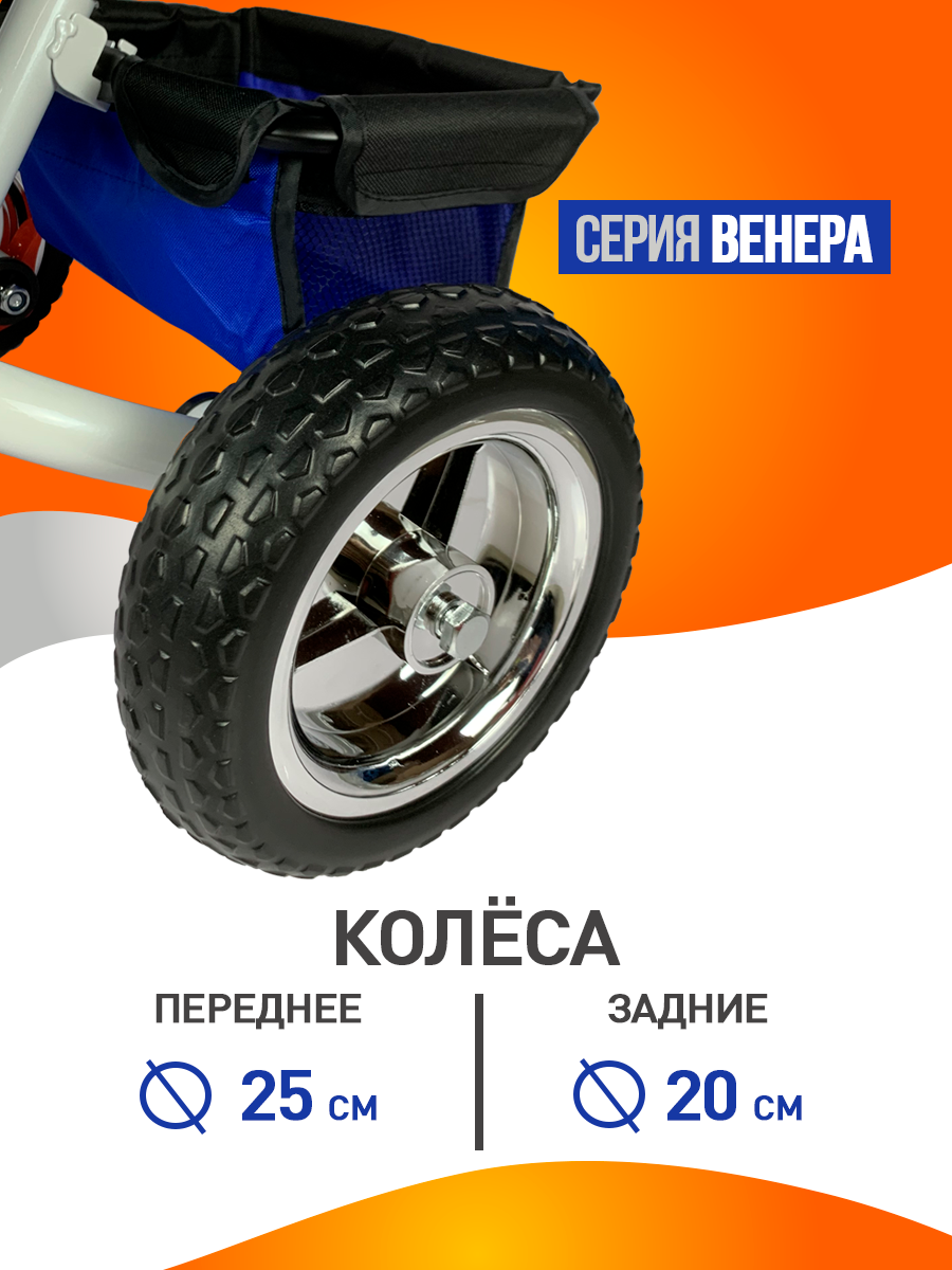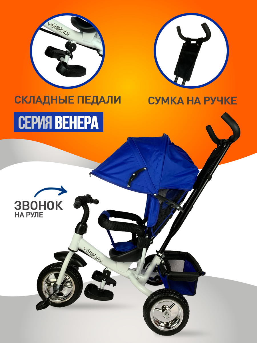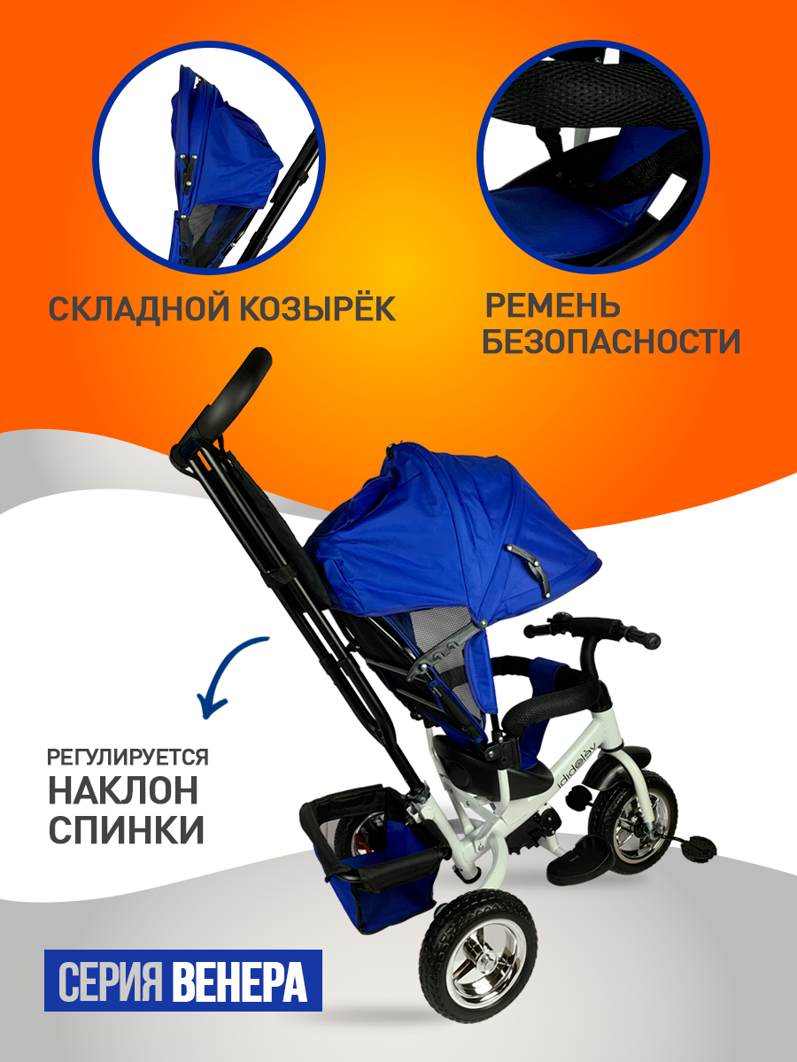 Велосипед трехколесный "венера" с ручкой для родителей, нагрузка до 30 кг, корзина, синий цвет. Артикул ВЛ-0872 интересное: