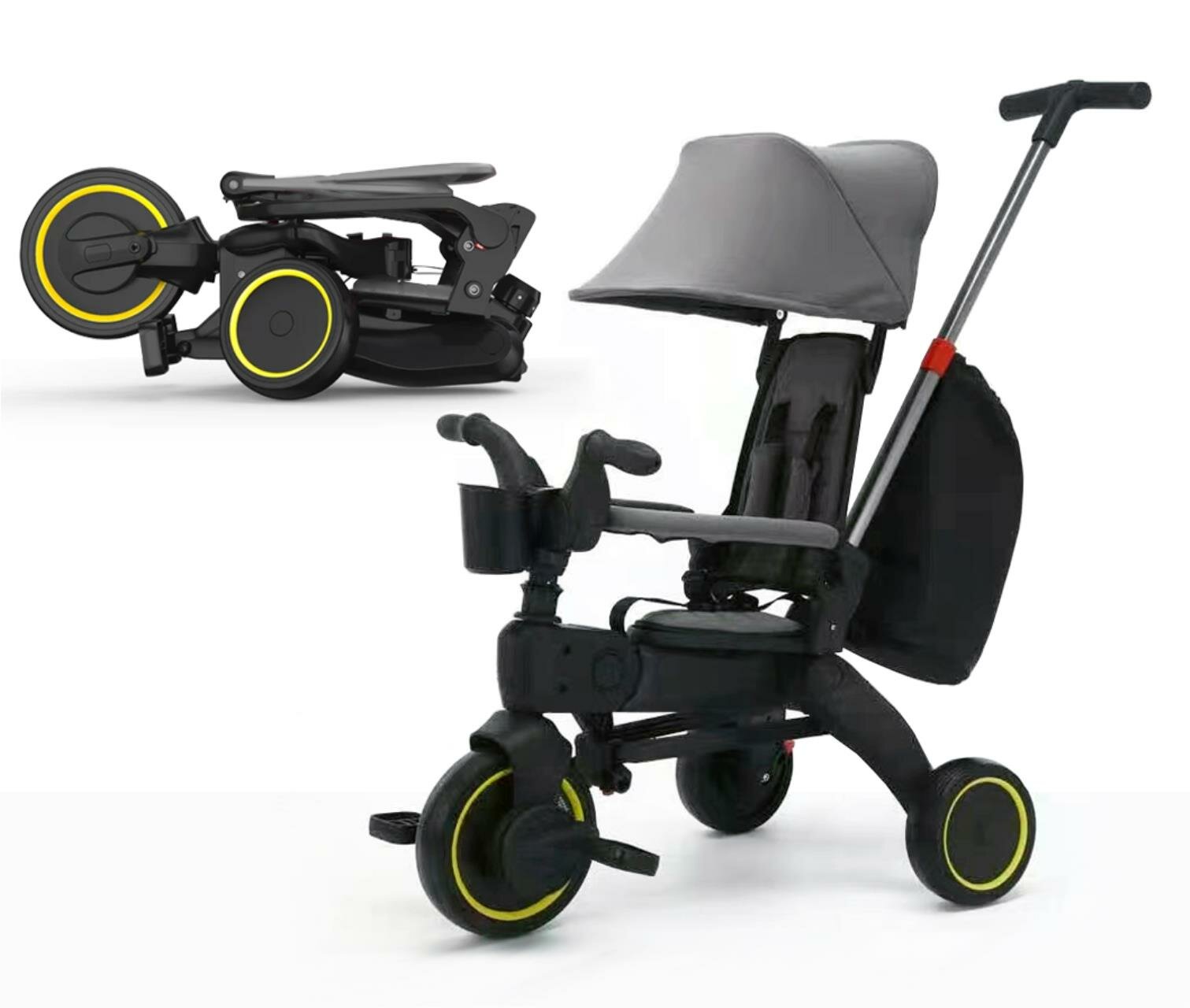 Велосипед 3-х колесный с ручкой управления, складной, тормоз, сумка, рама: пластик, колеса: 10 и 8 дюймов интересное:
