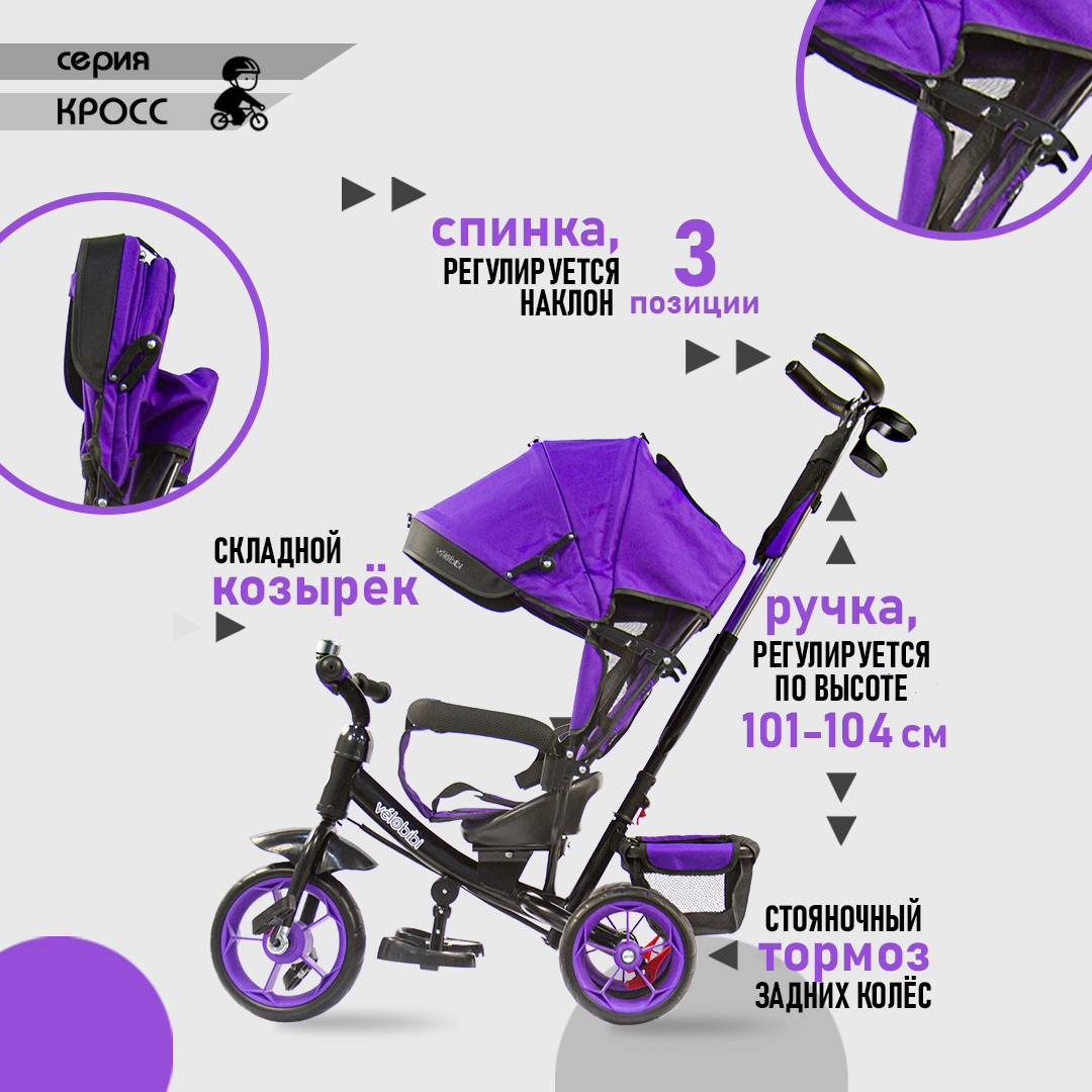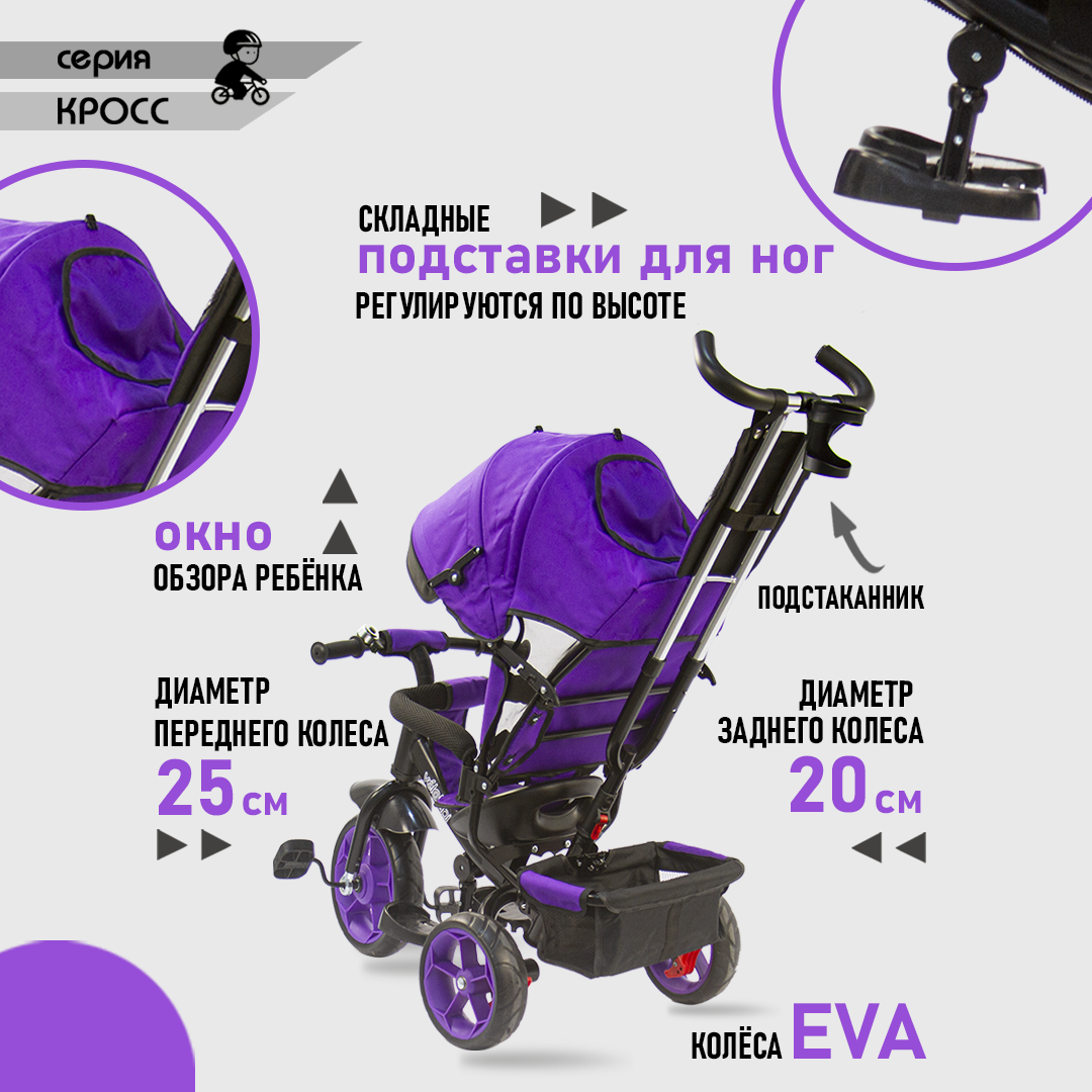 СохранитьВелосипед-трансформер трёхколесный с ручкой КРОСС (колеса EVA 10"/8", корзина), фиолетовый интересное: