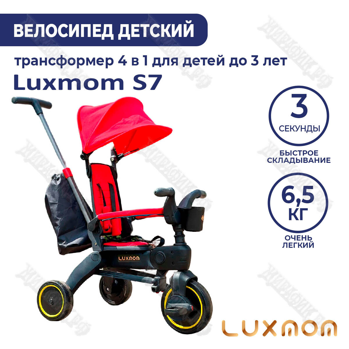 Велосипед трехколёсный Luxmom S7 складной (Красный) интересное: