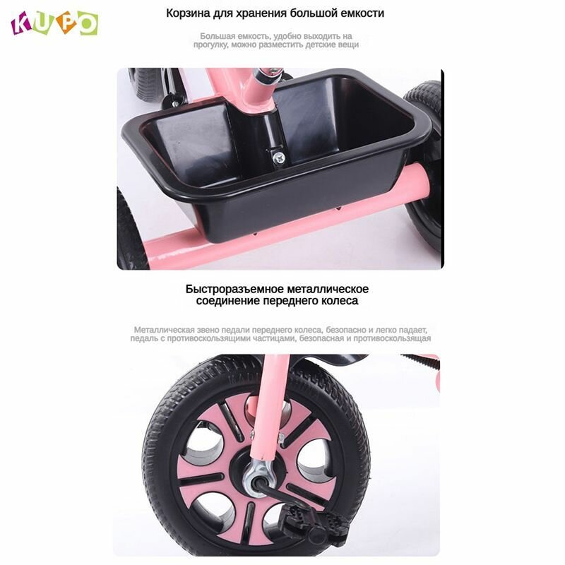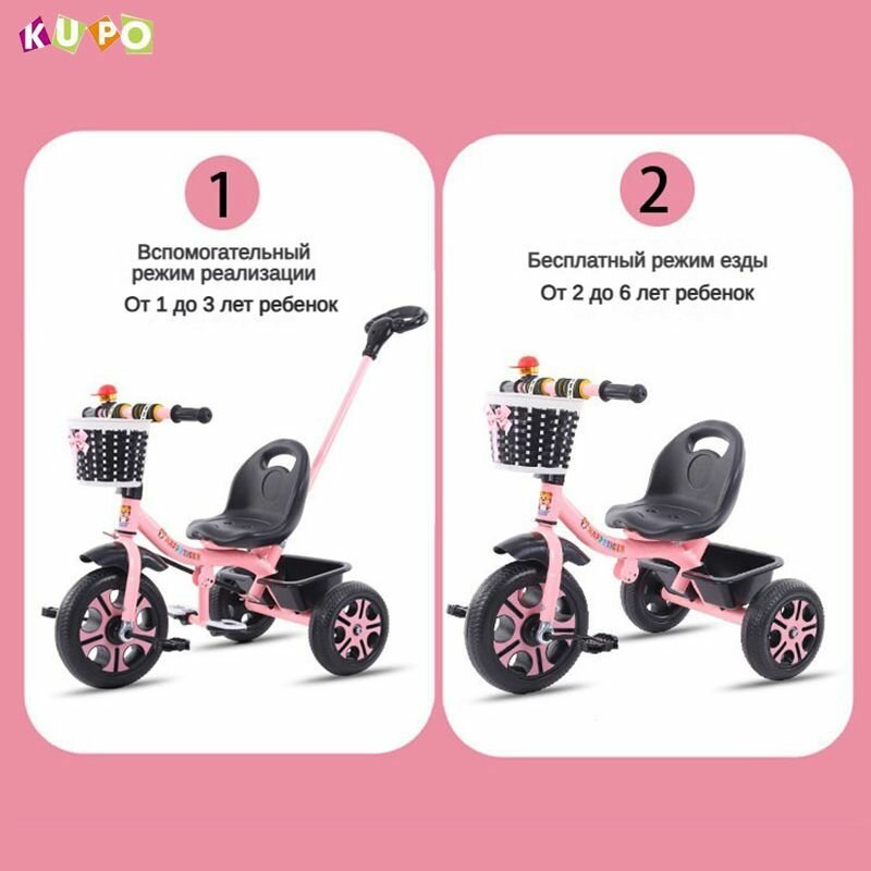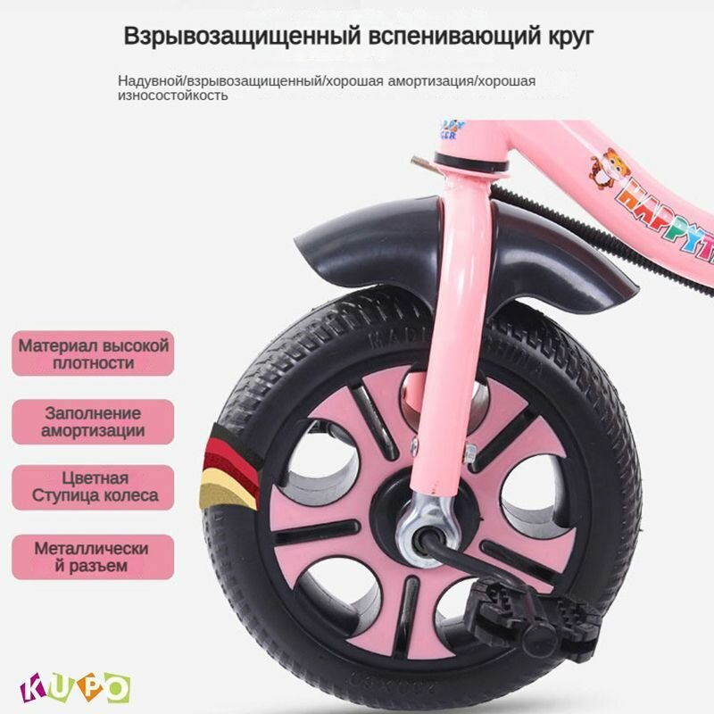 Велосипед трехколесный детский/ Со съемной ручкой, ремнем безопасности, пустыми титановыми шинами интересное:
