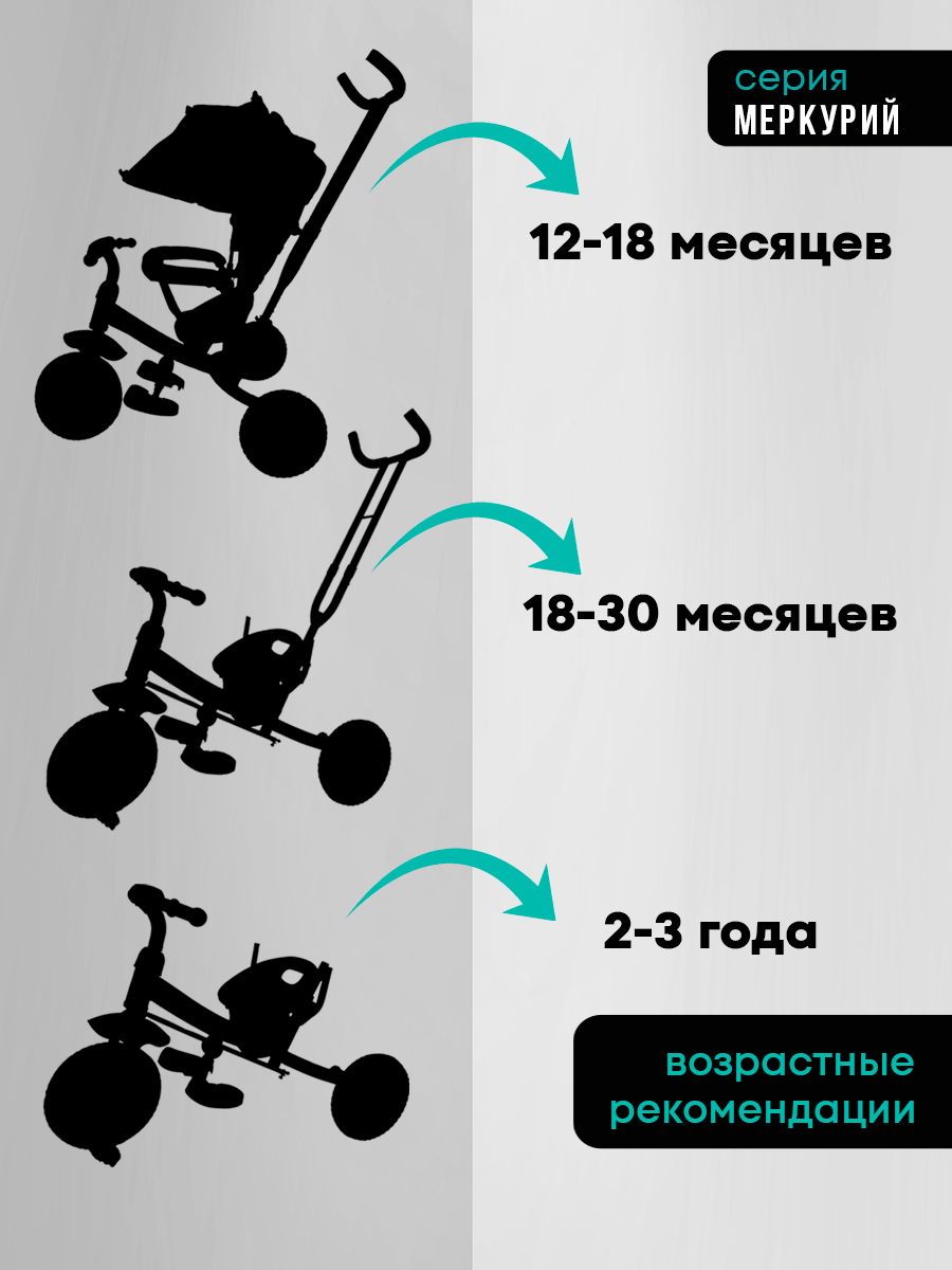 СохранитьВелосипед-трансформер "Меркурий" трёхколесный с ручкой, нагрузка до 30 кг, для детей от 1+, мятный интересное: