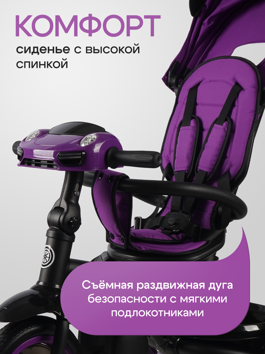 СохранитьВелосипед трёхколёсный с ручкой ПРАЙМ PLUS, резиновые колеса, музыкальный модуль, фиолетовый интересное: