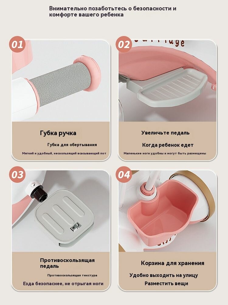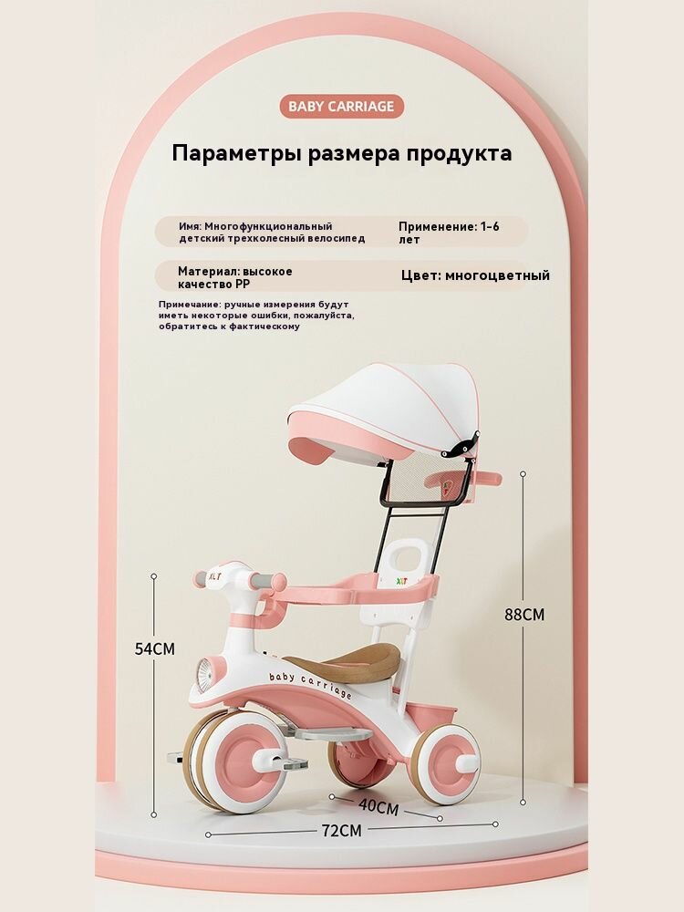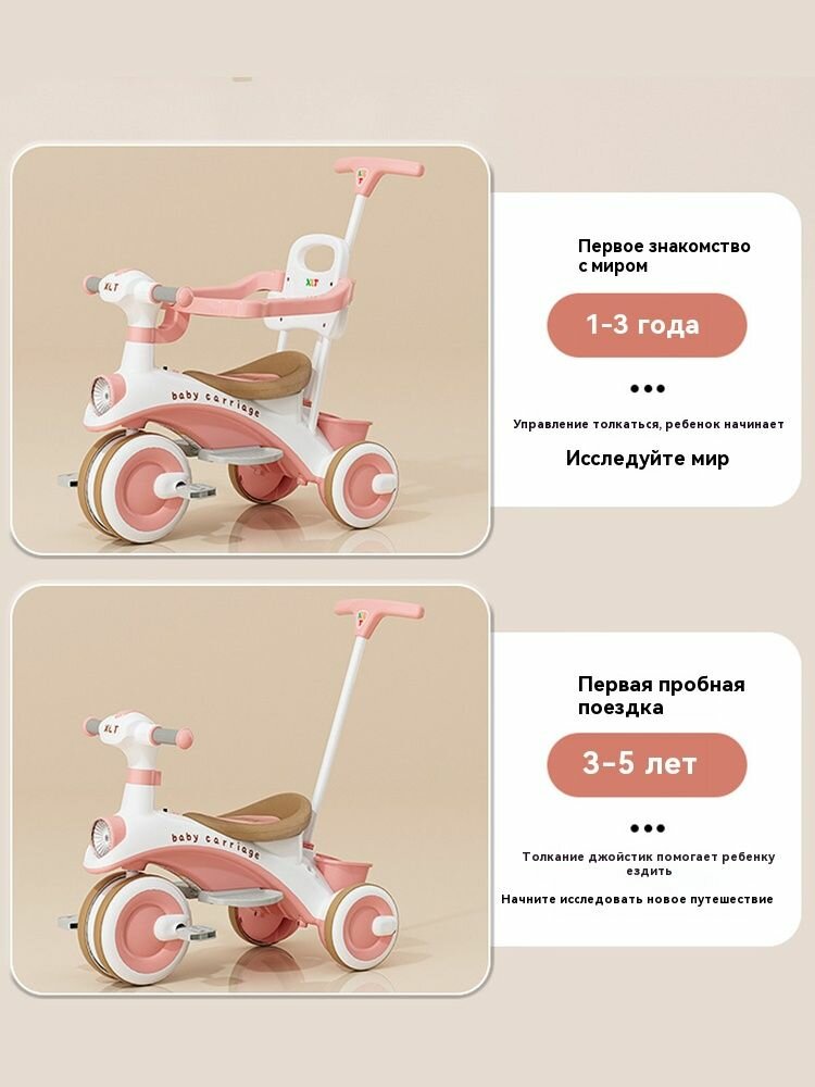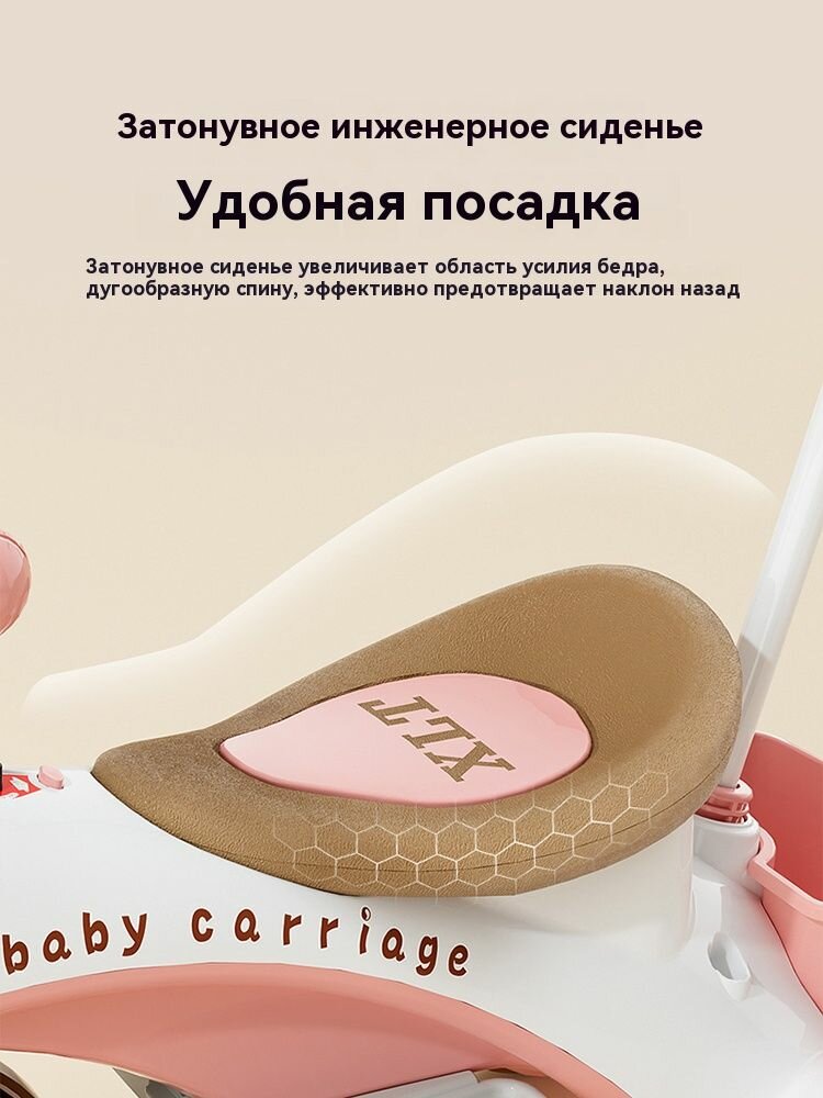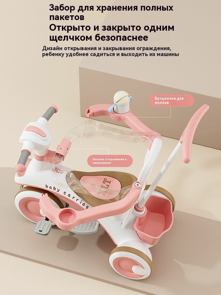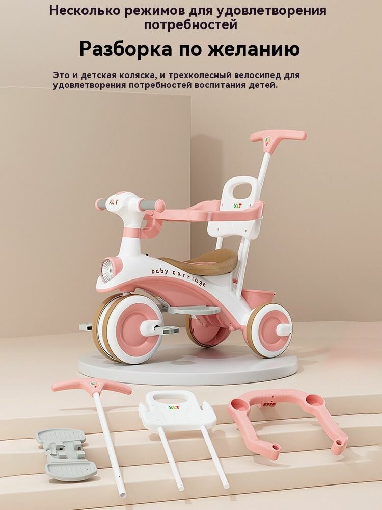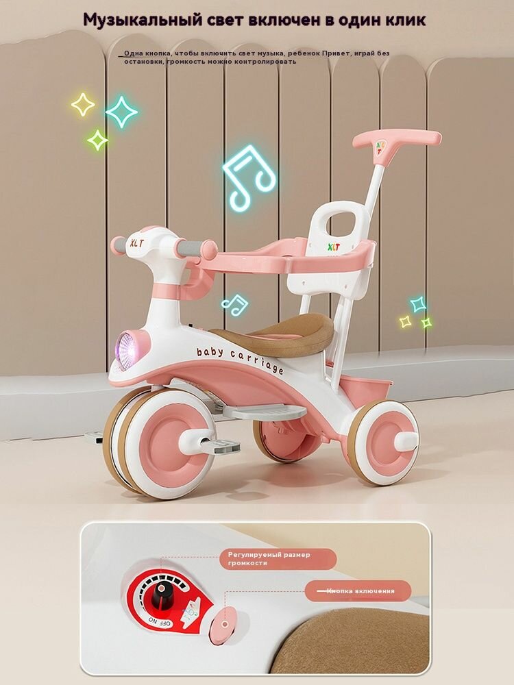 Велосипед-коляска "PT906", для детей от года до 3 лет, музыкальный, складной, светло-розовый