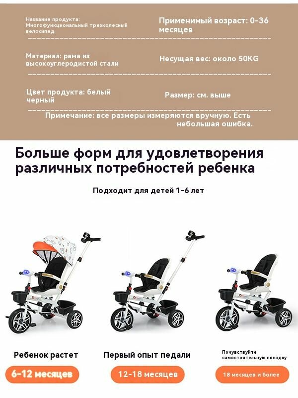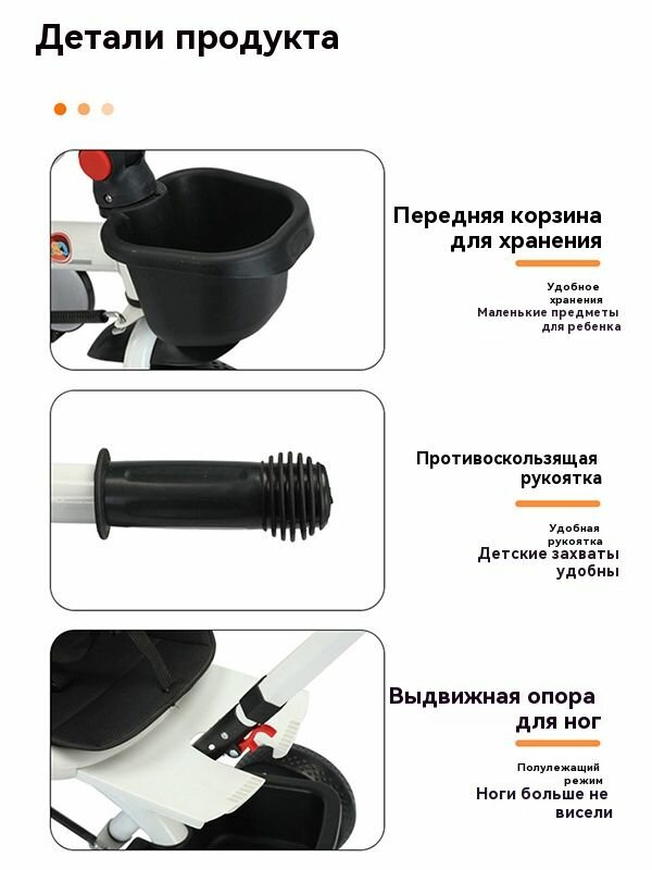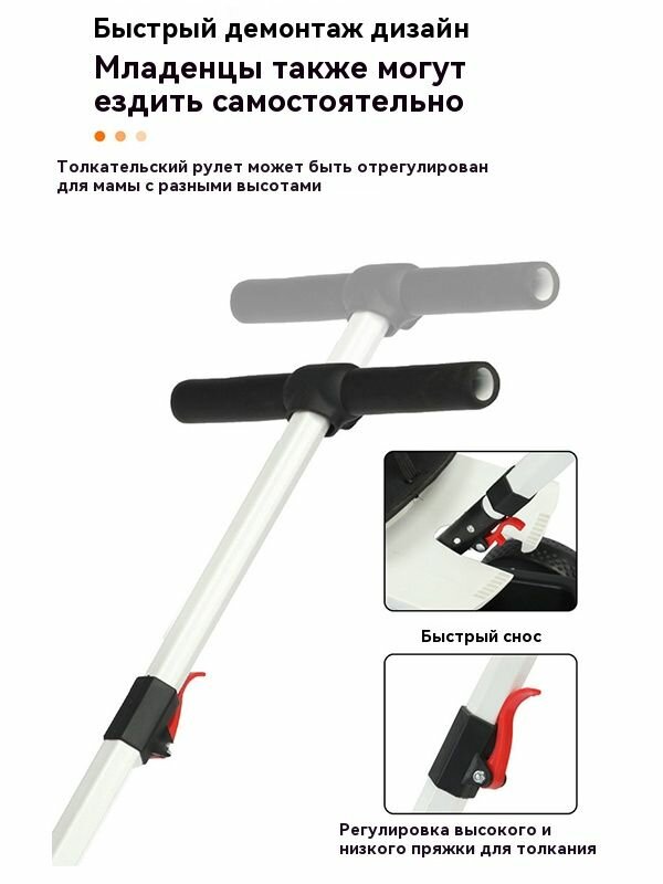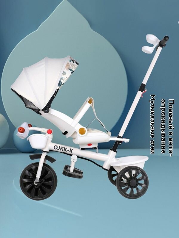 Детский велосипед-коляска 4 в 1, с родительской ручкой и козырьком, сталь, белый интересное: