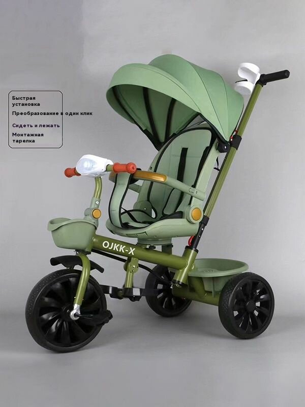 Детский велосипед с родительским управлением, трехколесный, стальной, зеленый