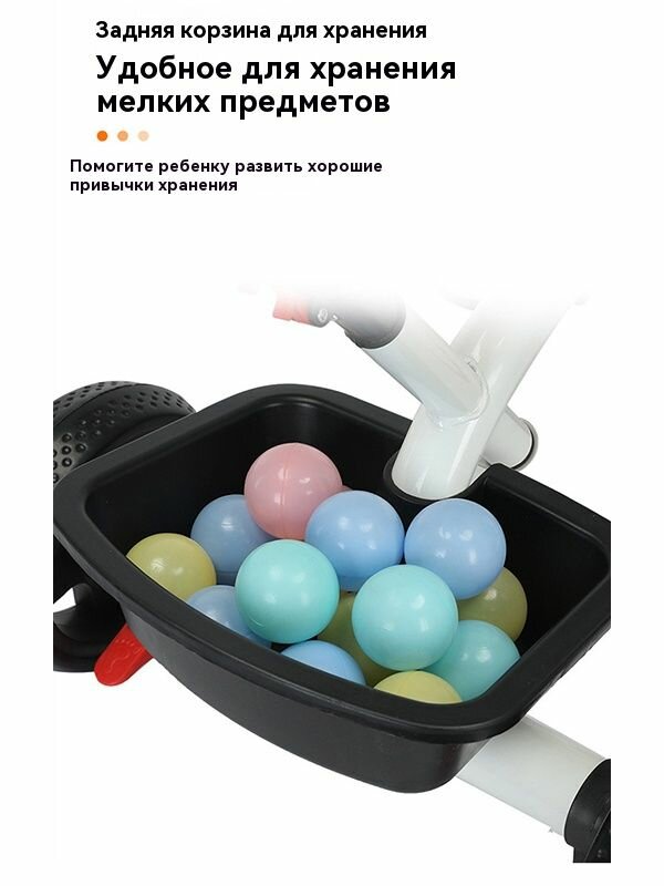 Детский велосипед-коляска 4в1, с родительской рукояткой, трёхколесный, чёрный