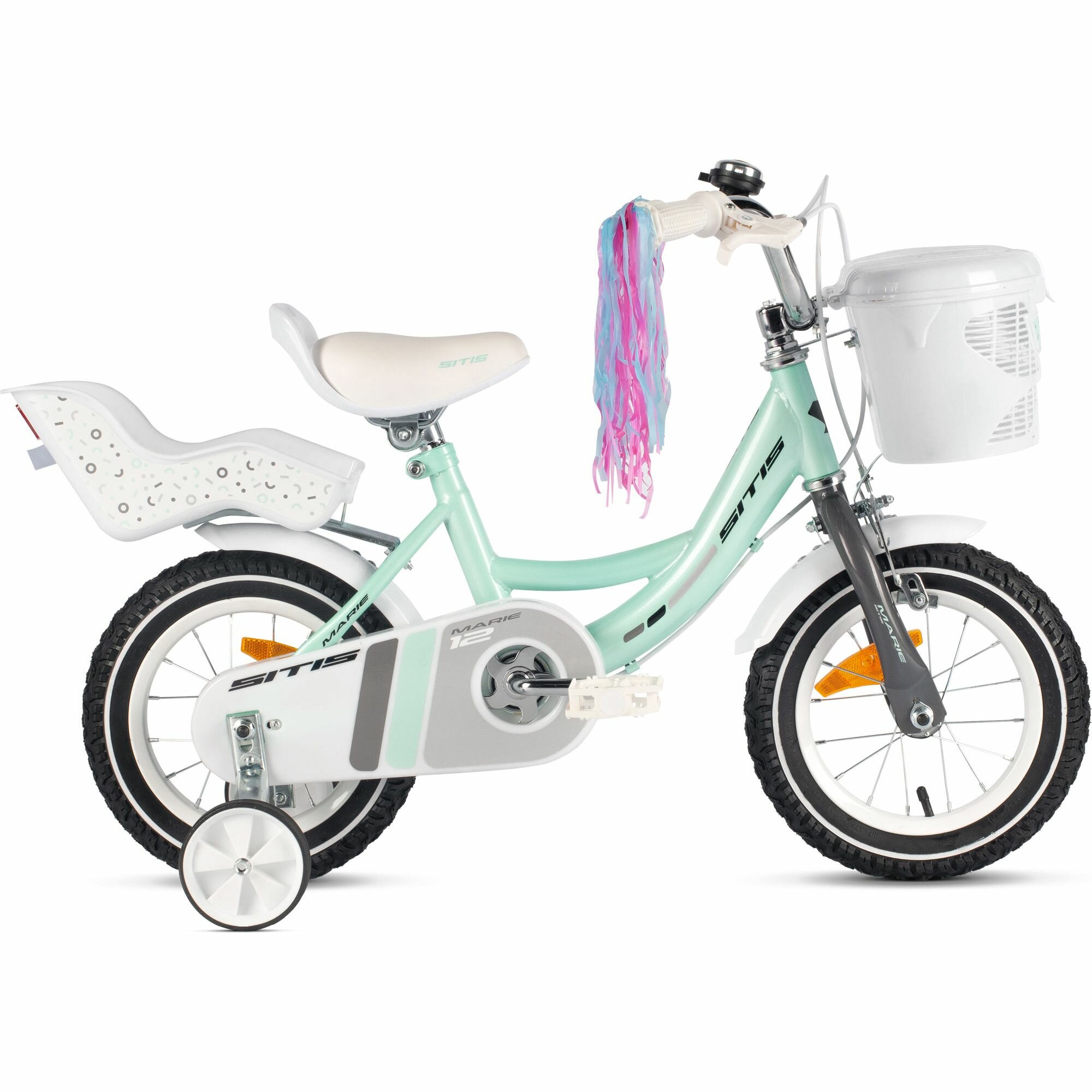 Купить Велосипед Sitis Marie 12" (2024) детский для девочек, 1 скорость, 130-145 см, цвет Mint, ободной и барабанный тормоз