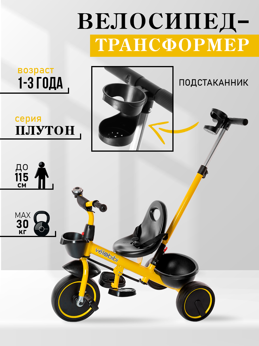 СохранитьВелосипед-трансформер "Плутон" трёхколесный с ручкой, нагрузка до 30 кг, для детей от 1+, желтый интересное: