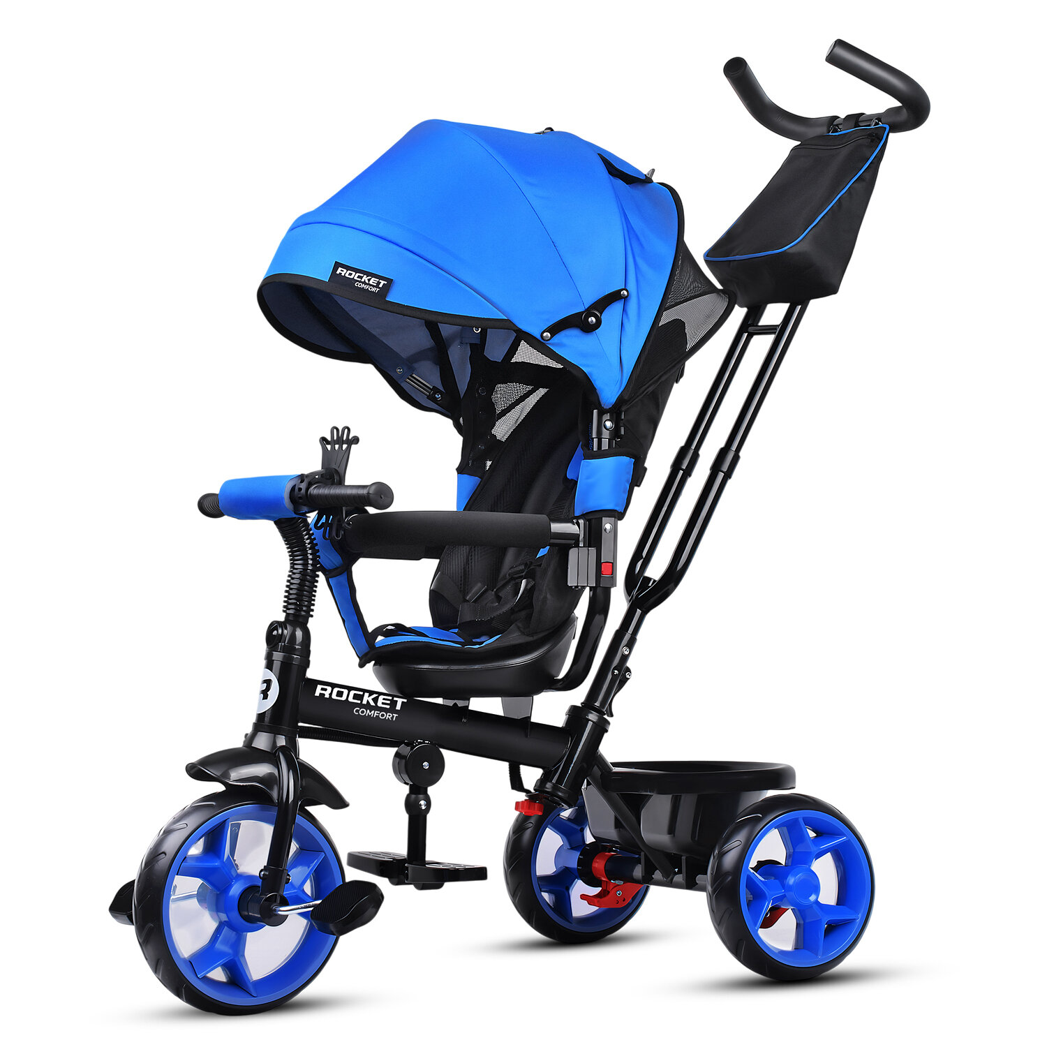 Купить Велосипед трехколесный с родительской ручкой и козырьком Rocket Comfort, колеса EVA 10"/8", цвет синий