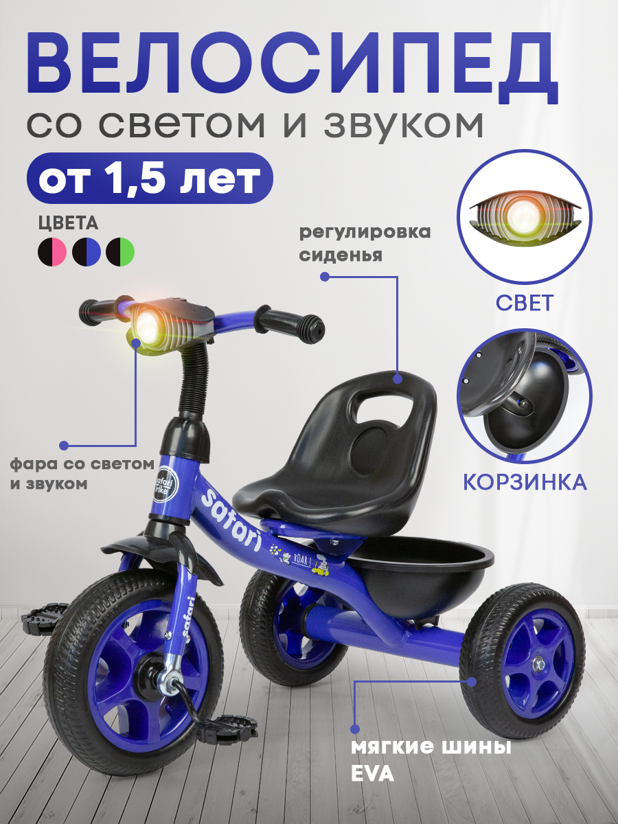 Детский велосипед, трехколесный ТМ Safari trike, с фонариком, синий интересное: