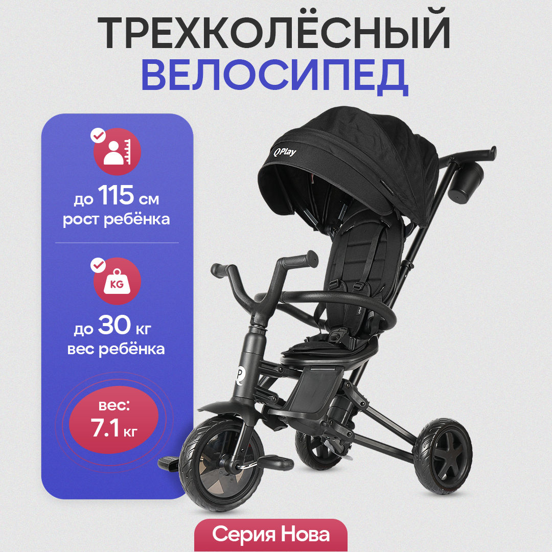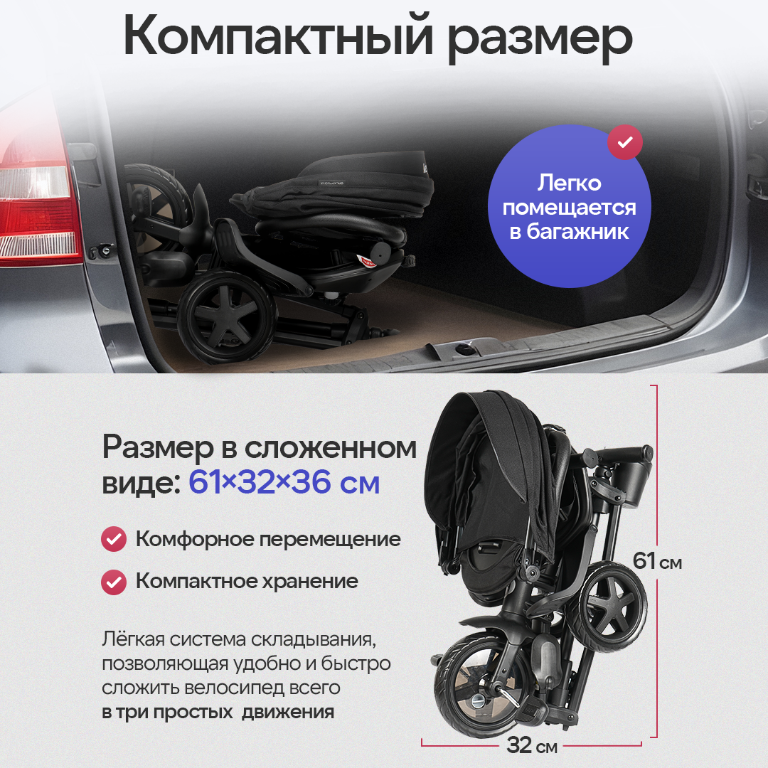 Велосипед трёхколесный с ручкой NOVA (колеса 8.5"/7.5" складной), черный интересное: