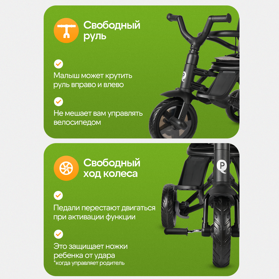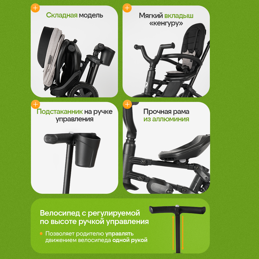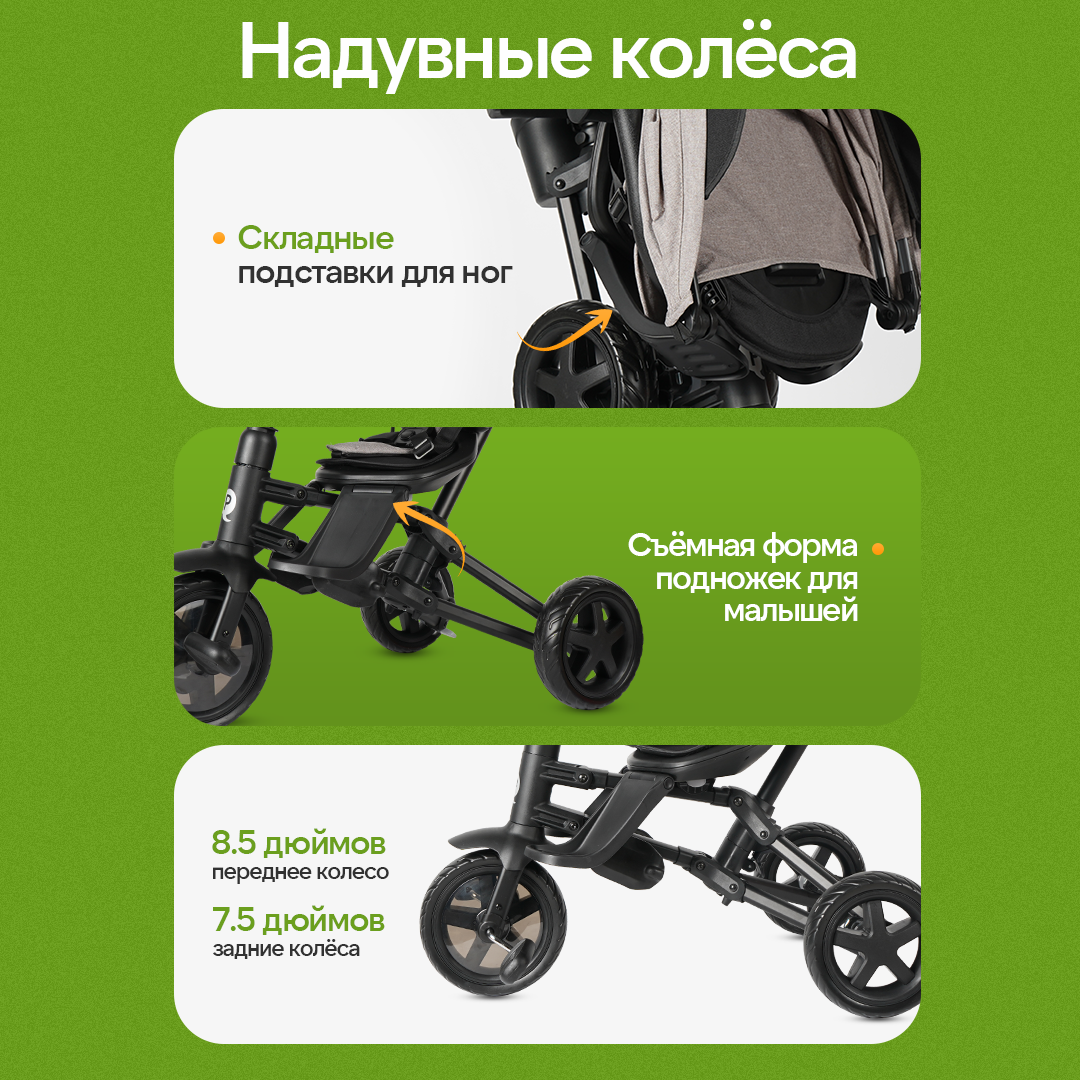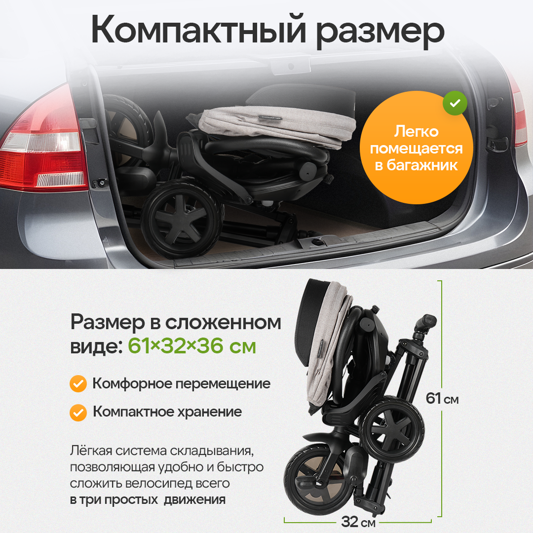 Велосипед трёхколесный с ручкой NOVA (колеса 8.5"/7.5" складной), серый интересное: