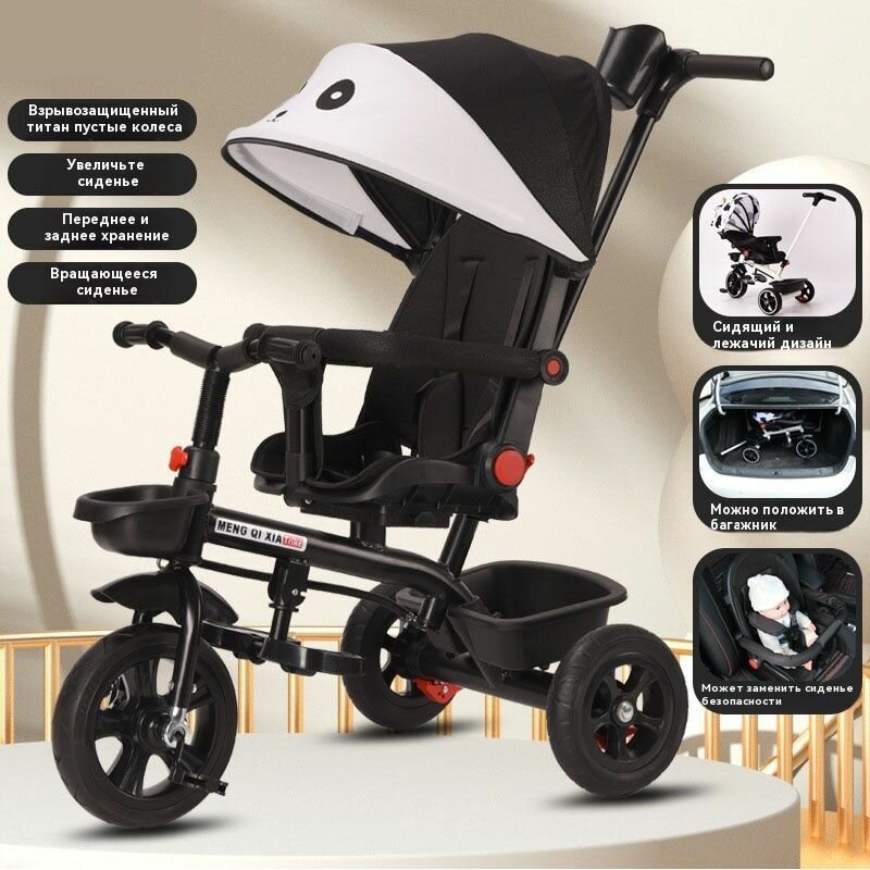 Купить Велосипед-коляска "Панда", 3 колеса, стальная рама, чёрный, нагрузка до 50 кг