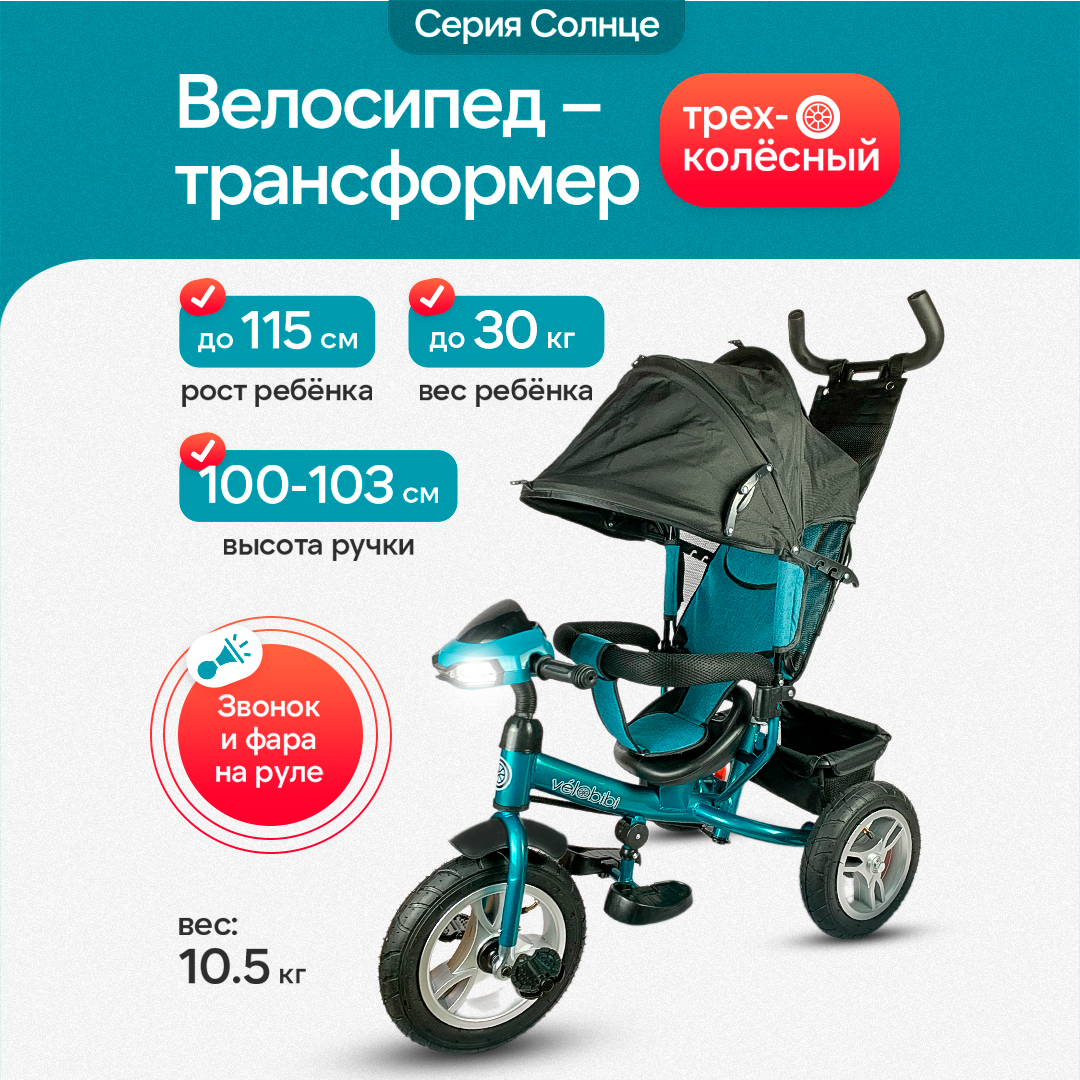 Купить Велосипед-трансформер 3в1 трёхколесный с ручкой "Солнце" нагрузка до 30 кг, для детей от 1+, цвет голубой