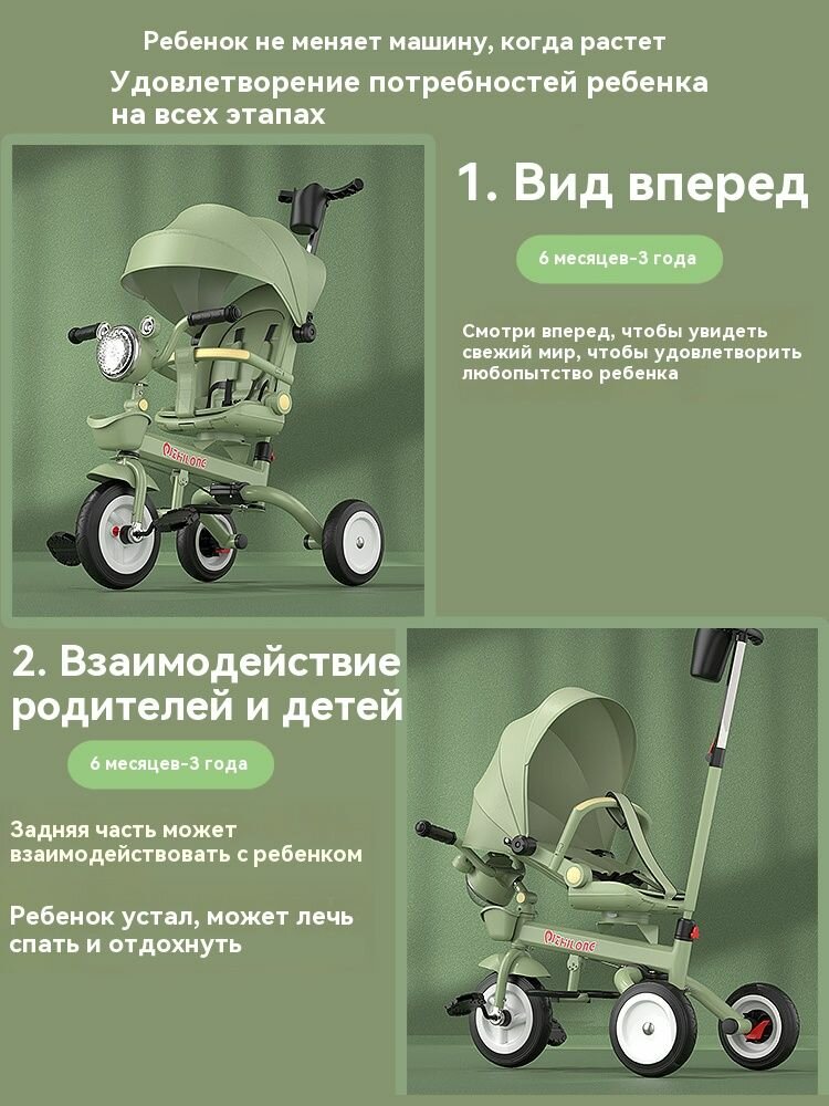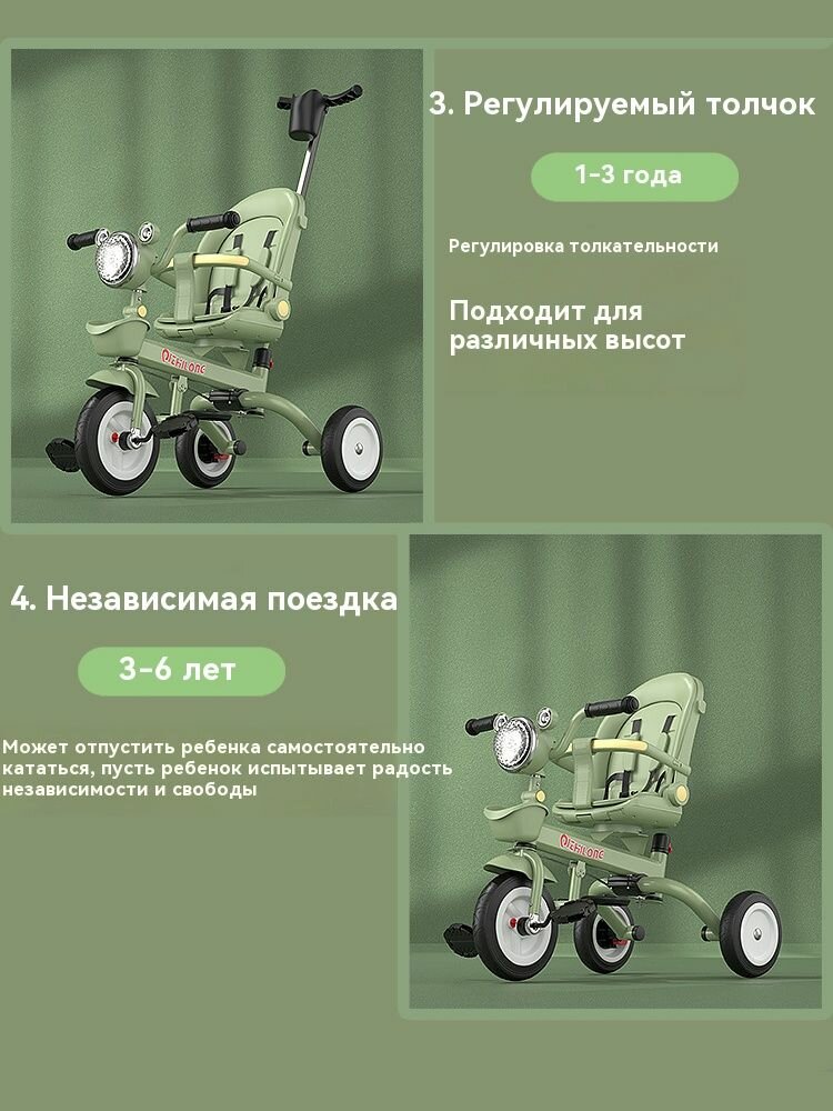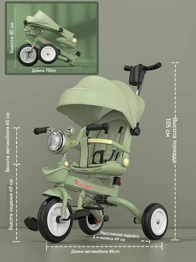 Велосипед ZDK001, складной, от 6 мес, до 6 лет, трёхколёсный, Свет. интересное: