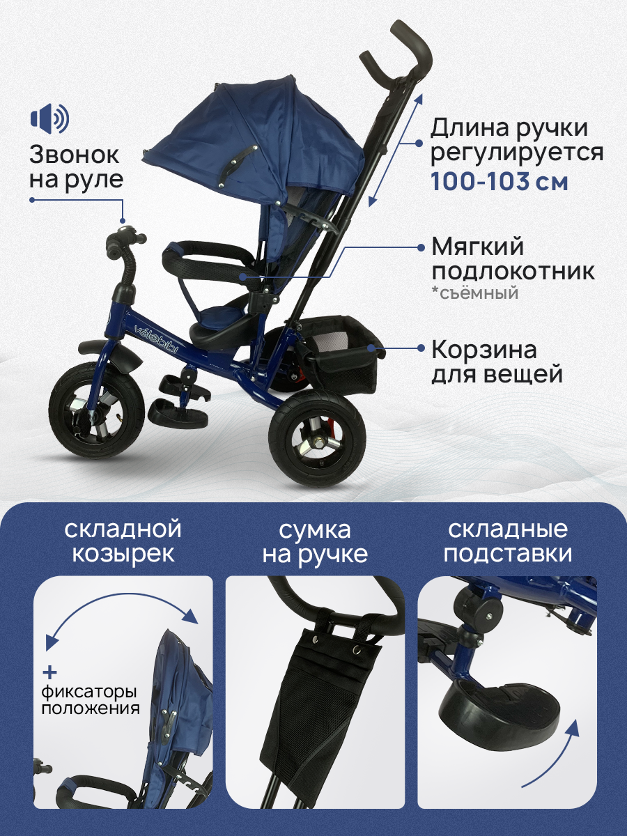 Велосипед трехколесный детский ROCKET XEL-288P-1, 3-х колесный, синий
