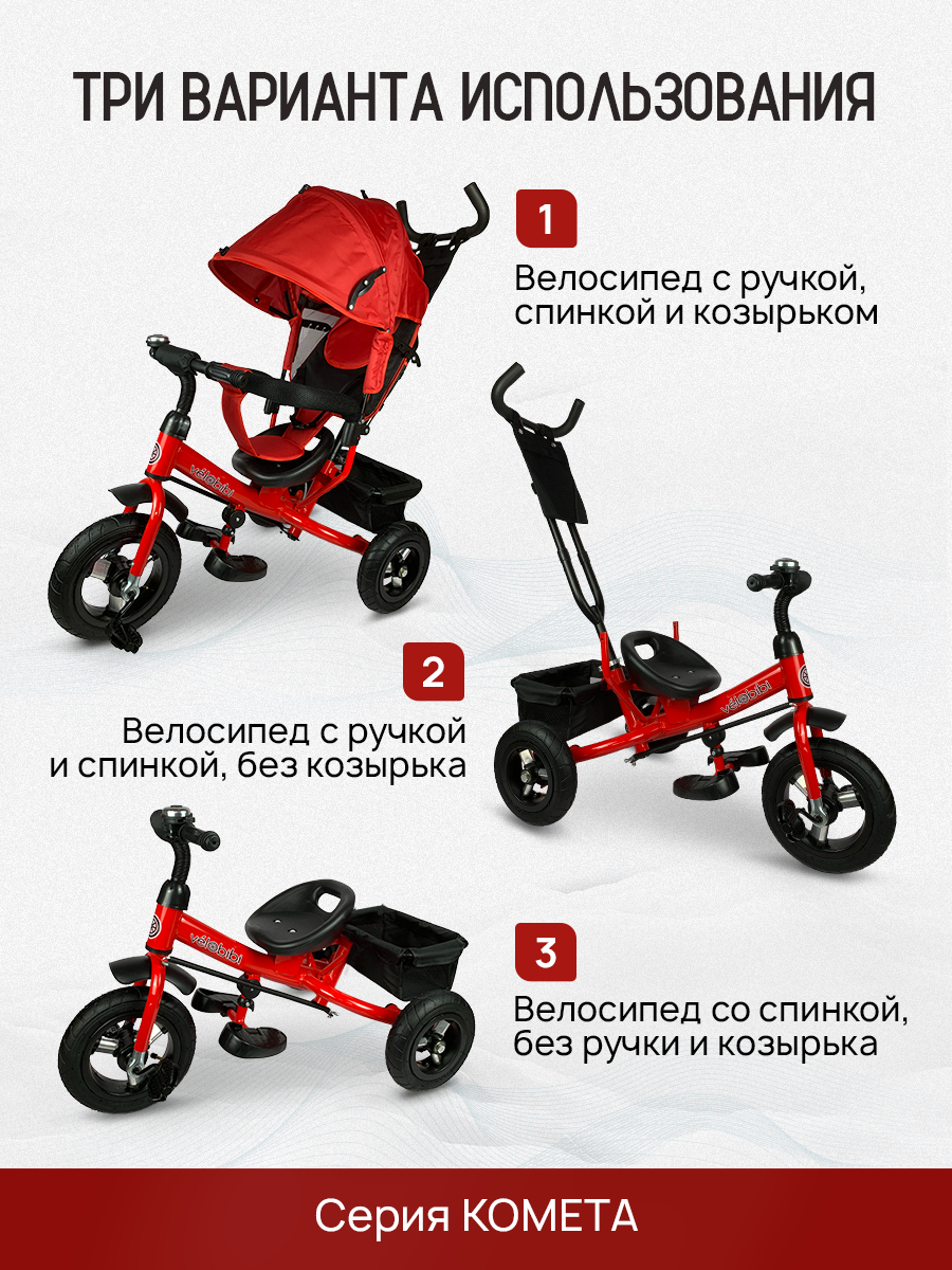 Велосипед-трансформер "Комета" трёхколесный с ручкой, нагрузка до 30 кг, для детей от 1+, красный интересное: