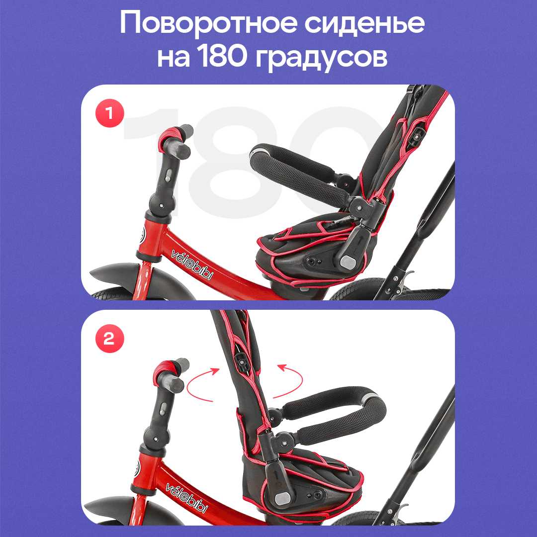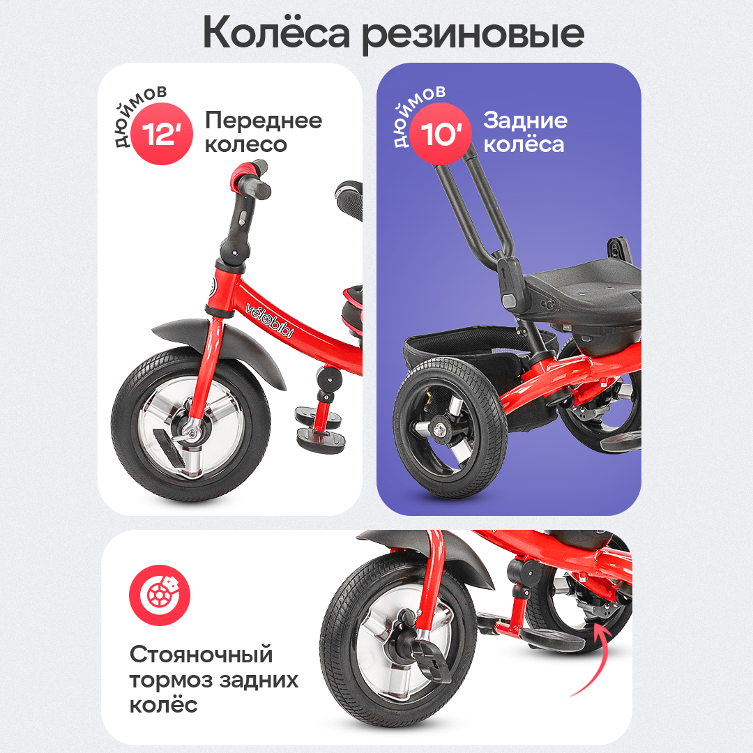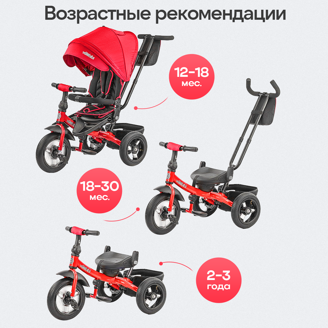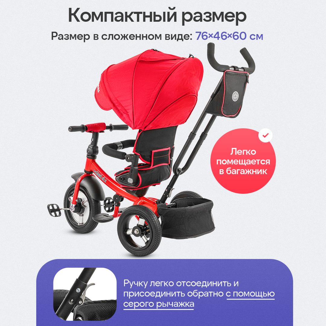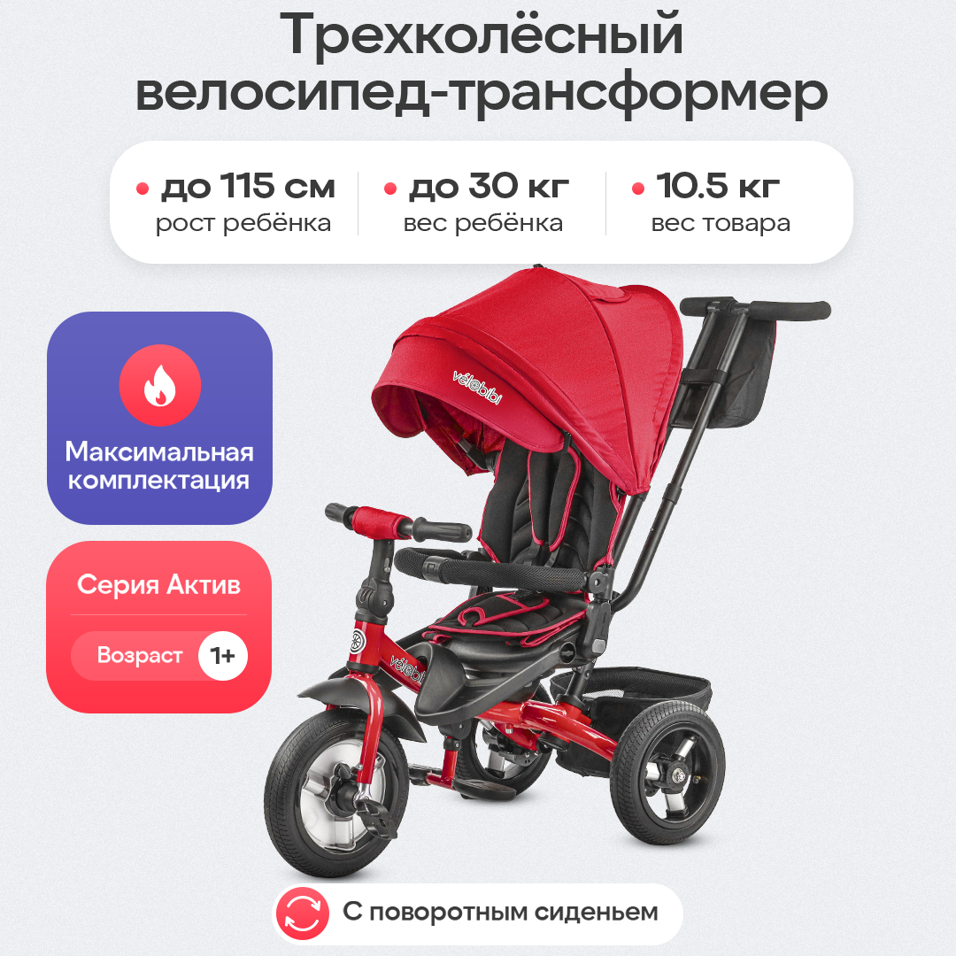 Велосипед-трансформер трёхколесный с ручкой АКТИВ (колеса 12"/10", поворотное сиденье), красный интересное: