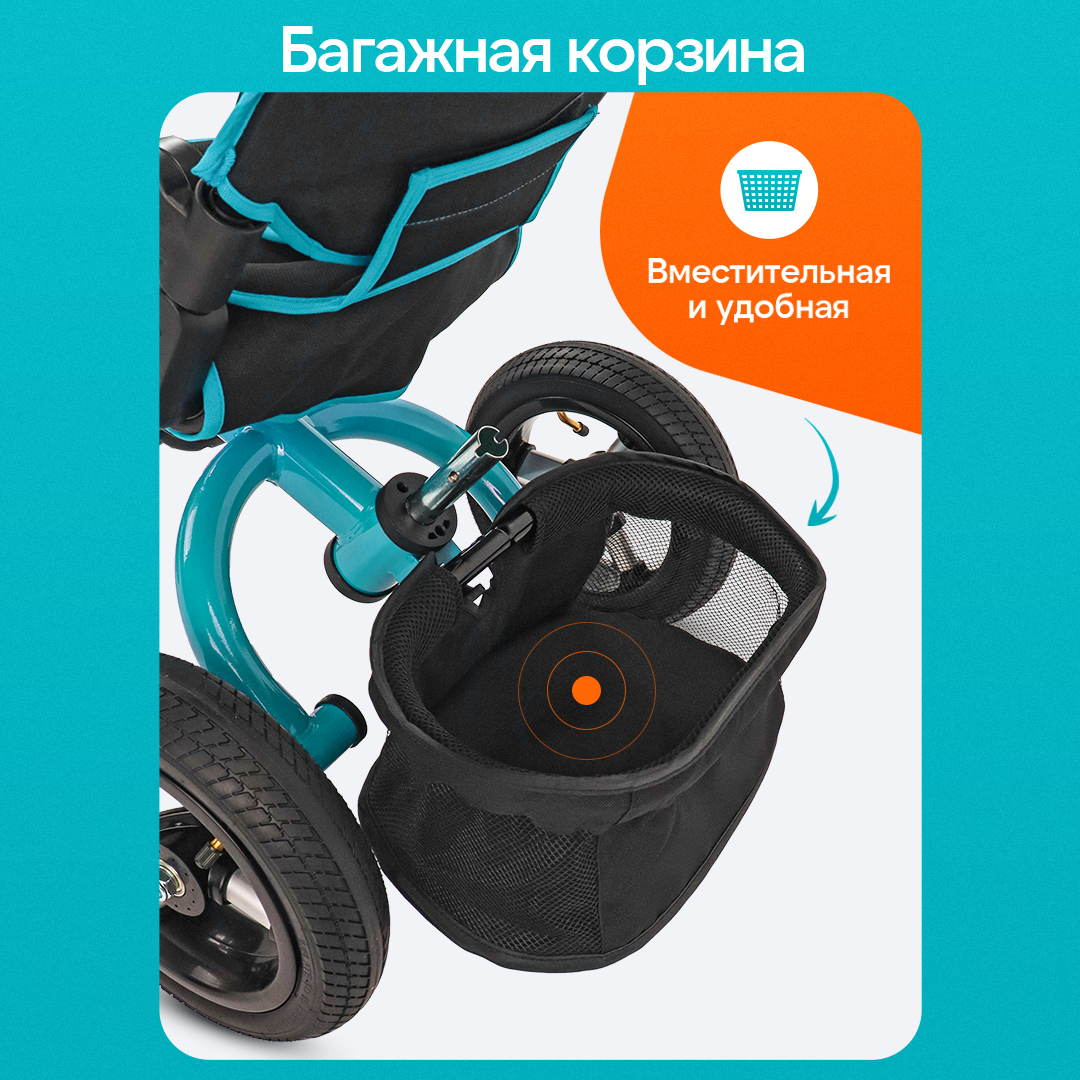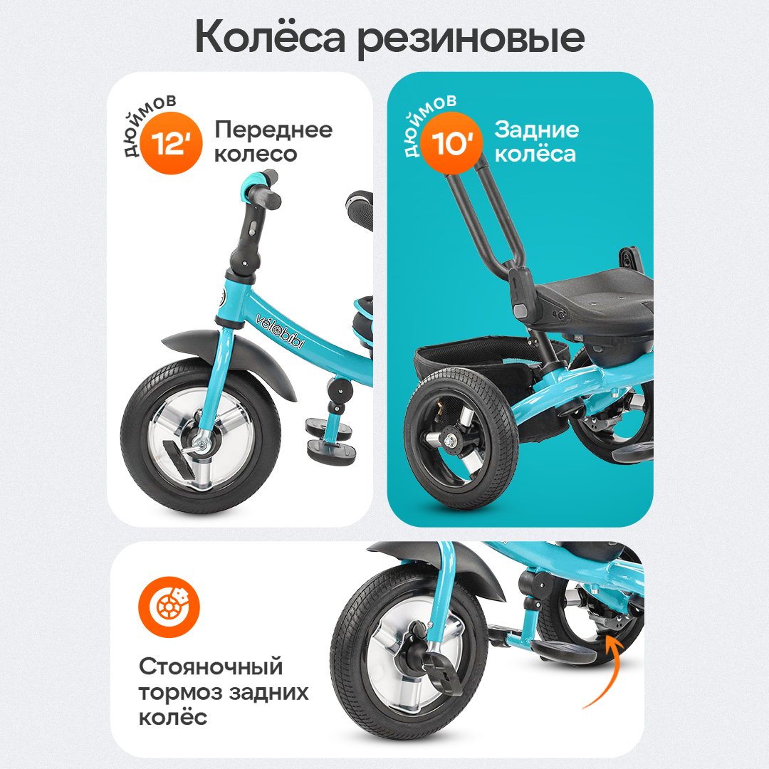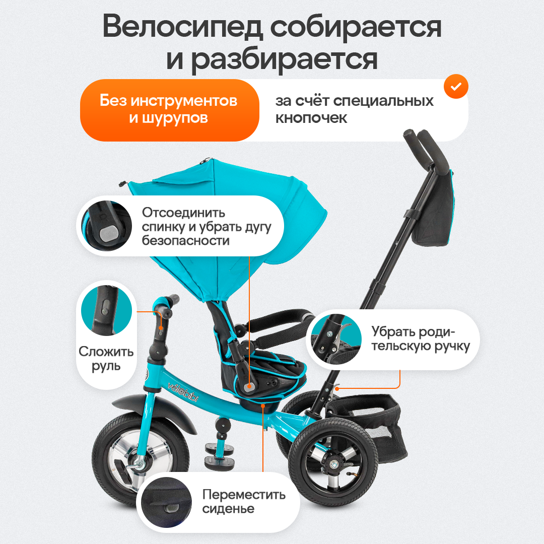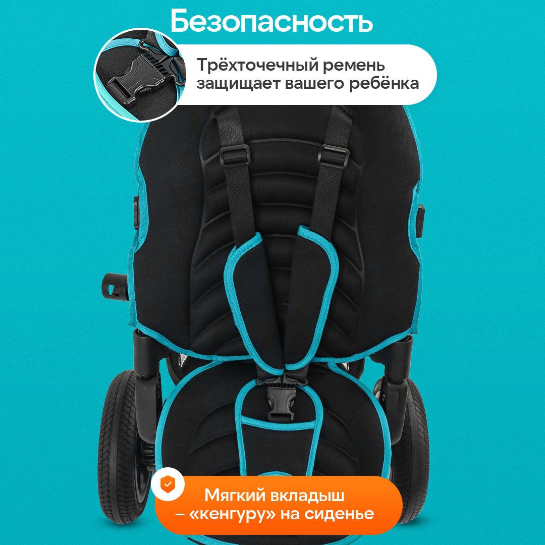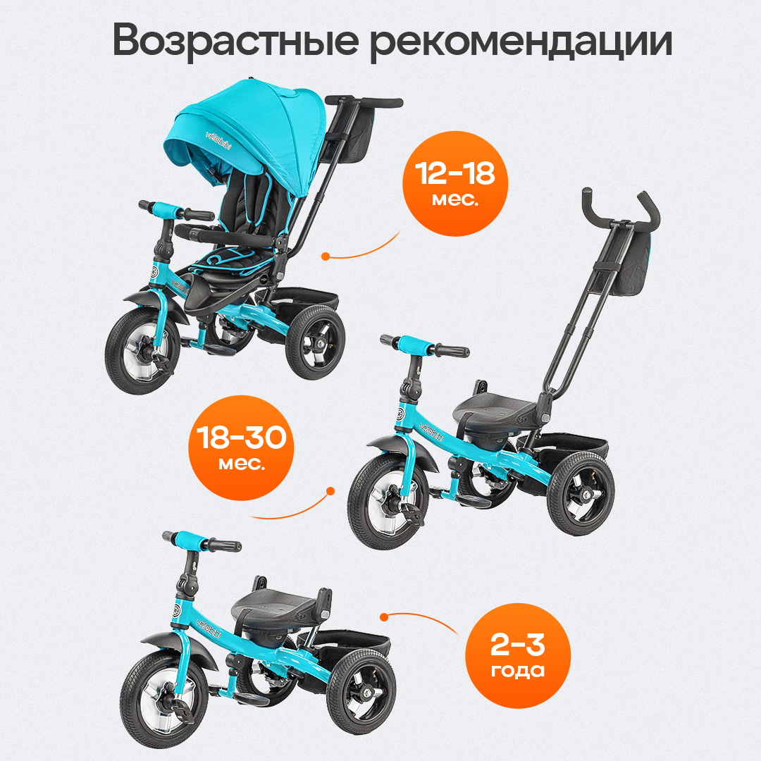 Велосипед-трансформер трёхколесный с ручкой АКТИВ (колеса 12"/10" поворотное сиденье), бирюзовый интересное: