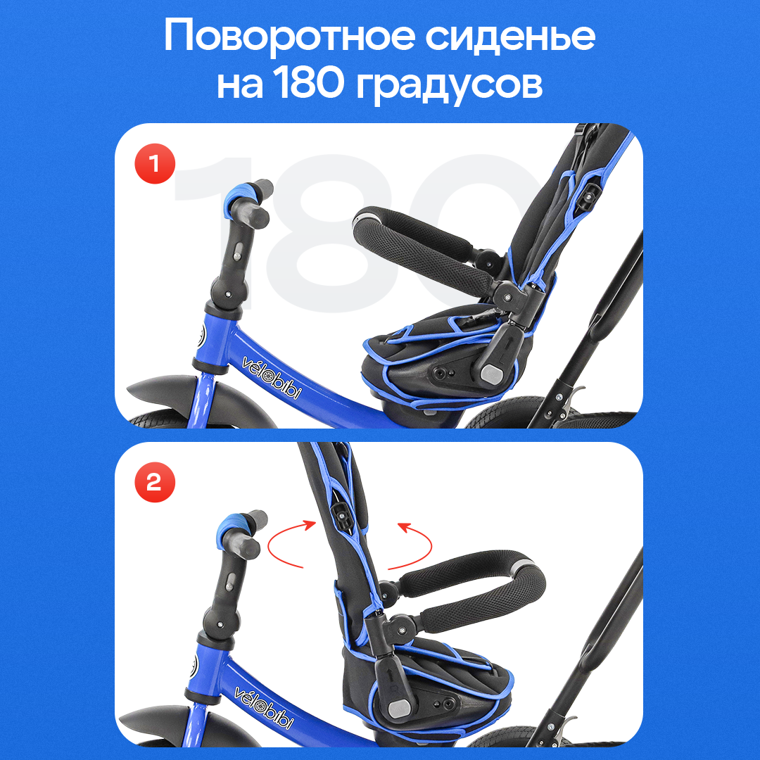 Велосипед-трансформер трёхколесный с ручкой АКТИВ (колеса 12"/10", поворотное сиденье), синий интересное: