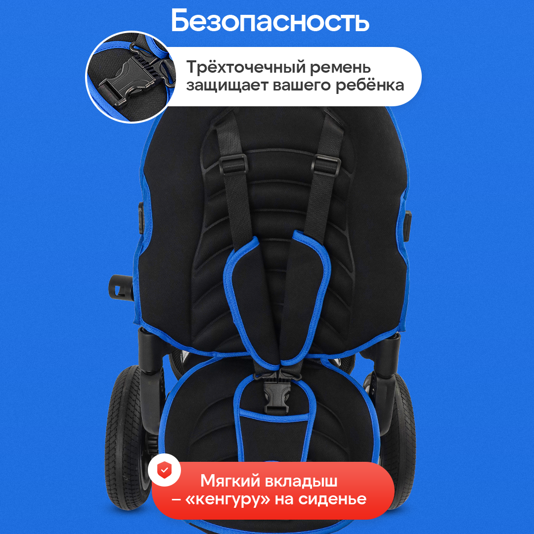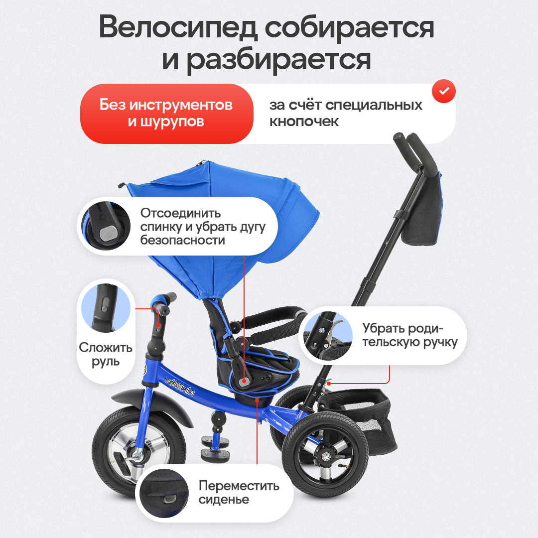 Купить Велосипед-трансформер трёхколесный с ручкой АКТИВ (колеса 12"/10", поворотное сиденье), синий