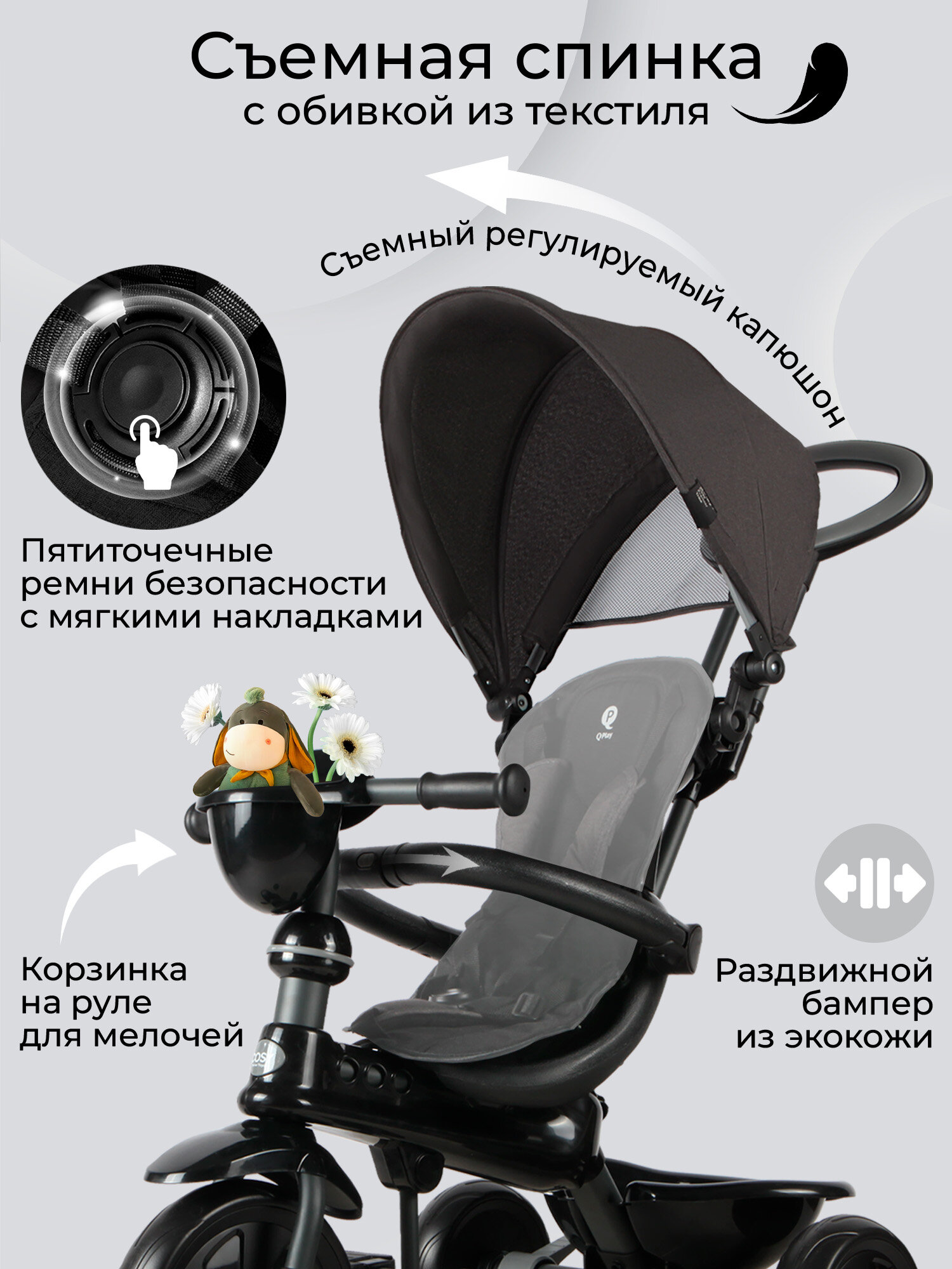 Велосипед трехколесный Qplay 8811 Cosy Grey интересное: