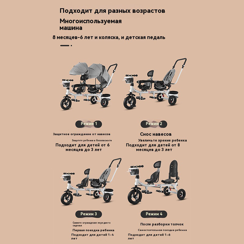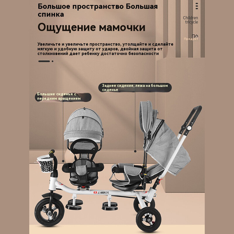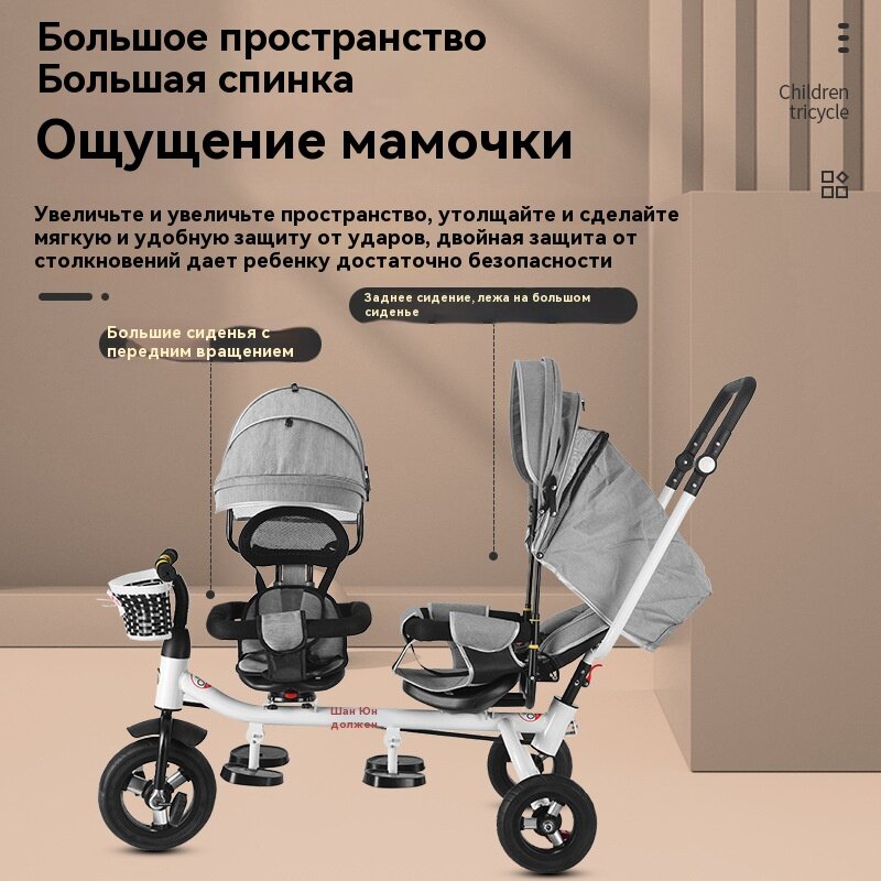 Велосипед детский двухместный с ручкой, сталь, резина, от 6 мес. до 7 лет, красный интересное: