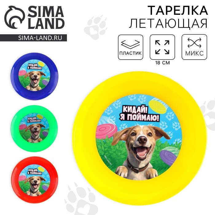 Купить Фрисби, летающая тарелка 18см «Песик» в пакете, микс, 3 штуки