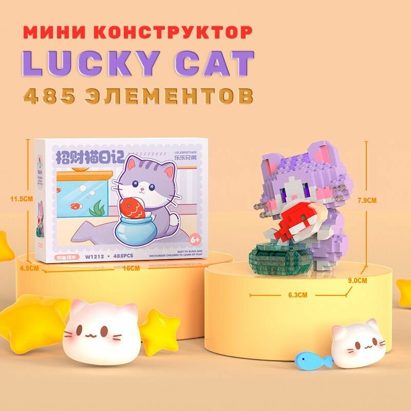 Купить Конструктор из миниблоков котик с рыбкой, 485 деталей
