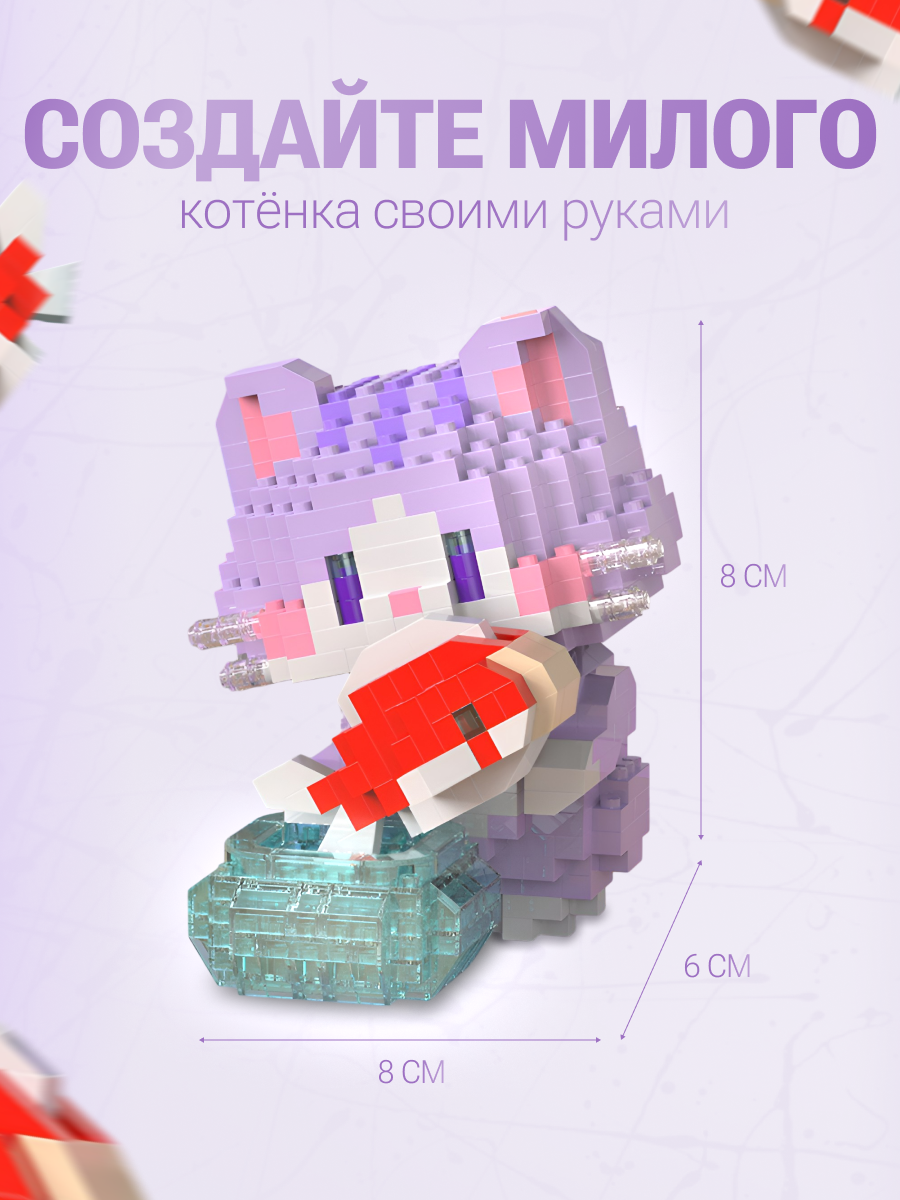 СохранитьКонструктор из миниблоков котик с рыбкой, 485 деталей интересное: