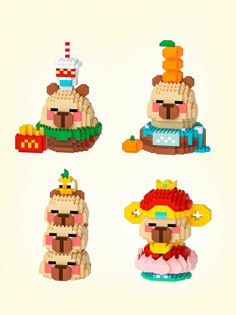 Купить Конструктор из миниблоков 3D игрушка капибара в бочке, 541 деталь