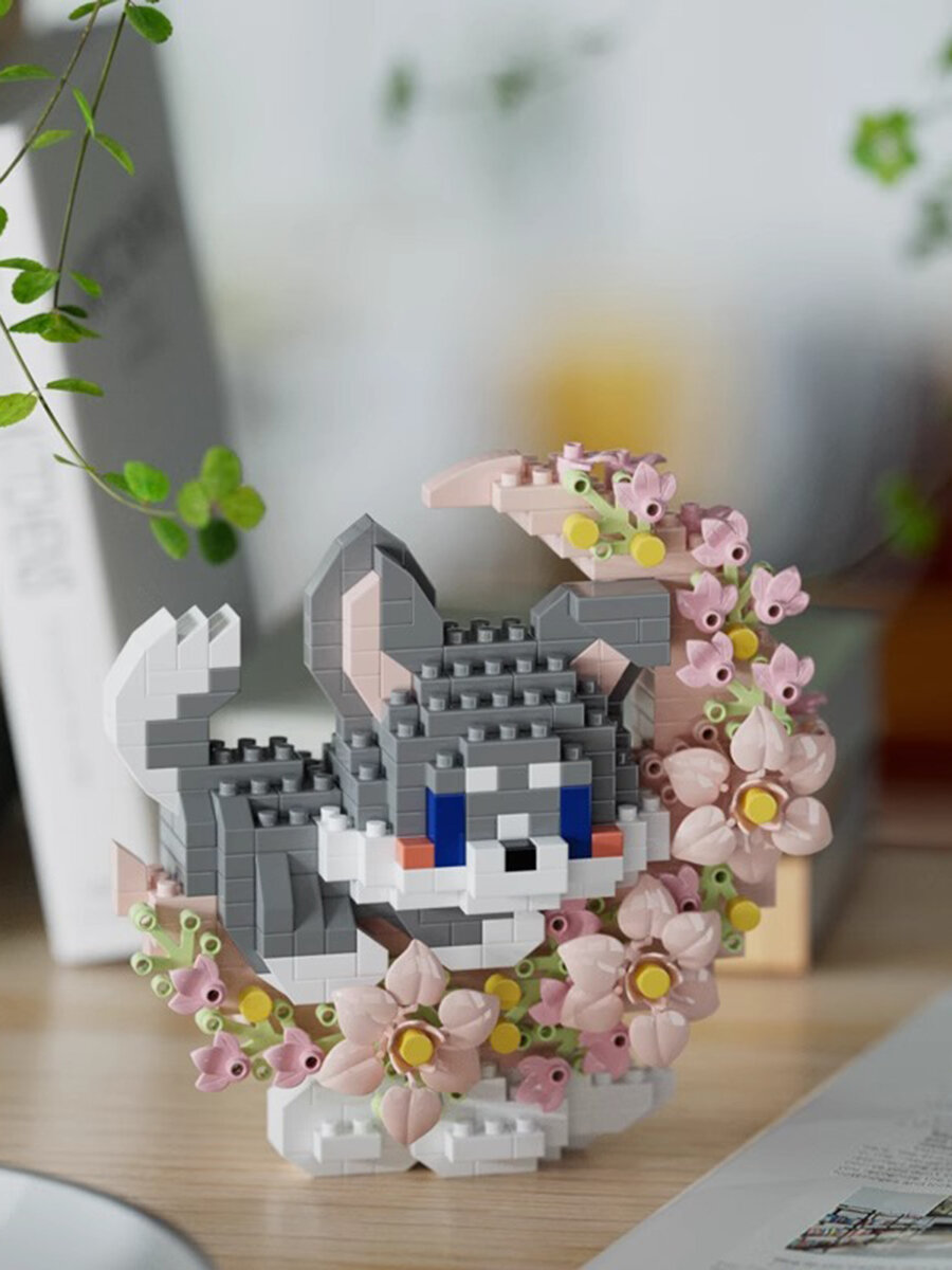 Конструктор из миниблоков серый котик с цветами, 514 деталей