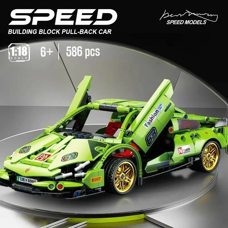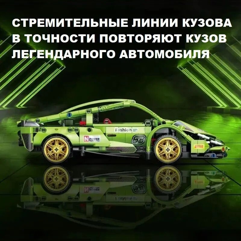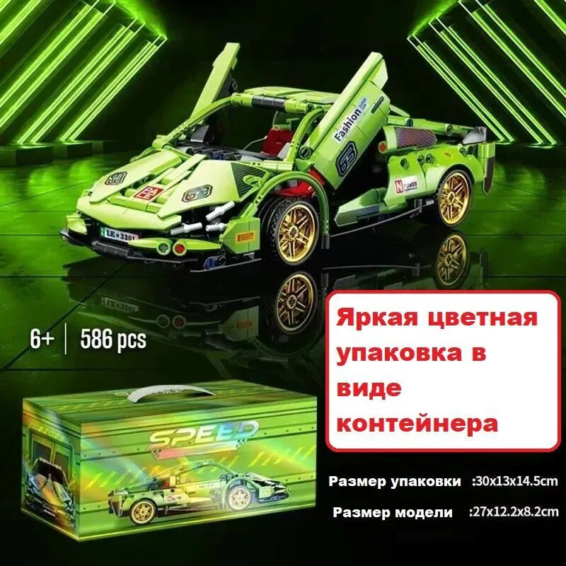 Конструктор, гоночный автомобиль с инерционным мотором "Lamborghini" 586 деталей зелёный интересное: