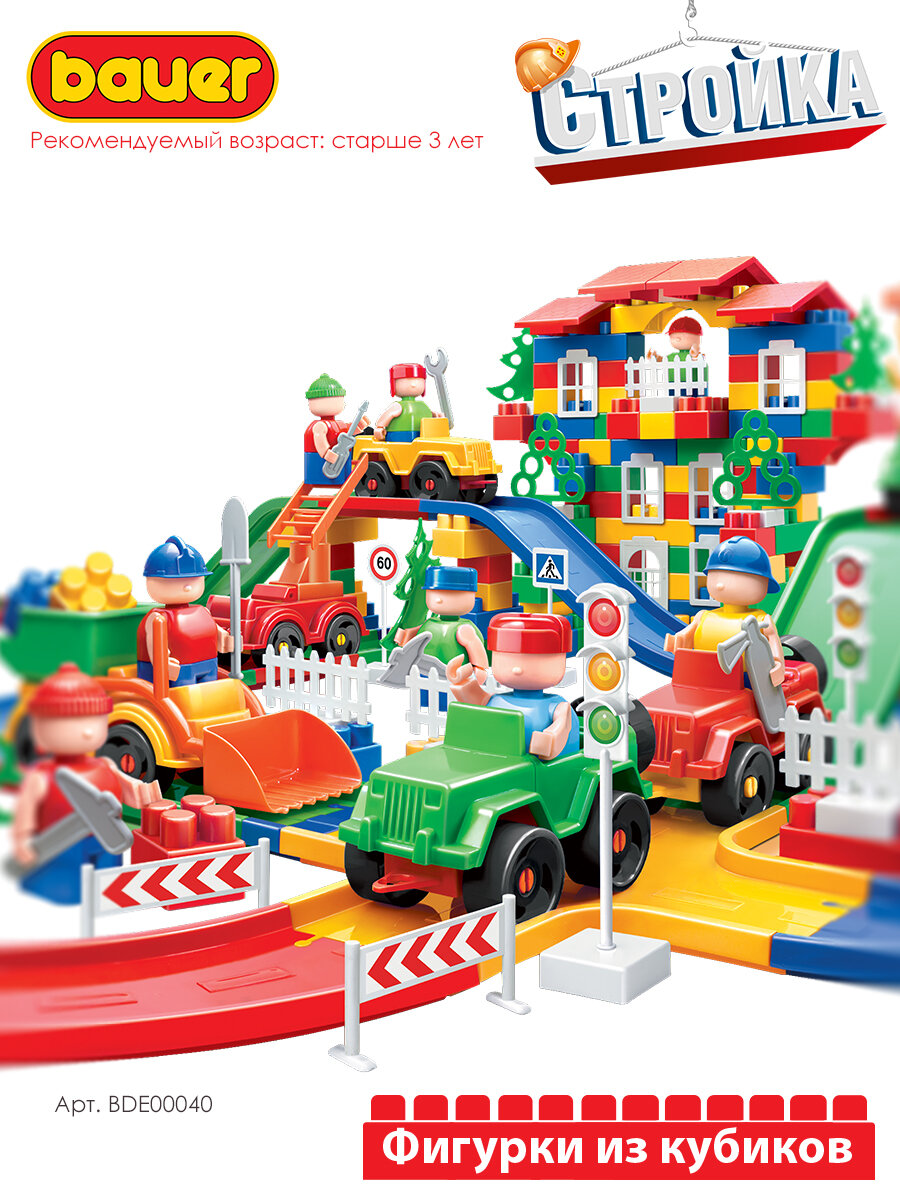 Купить Развивающий конструктор Bauer "Стройка", 300 деталей, для детей от 3-х лет, ECO