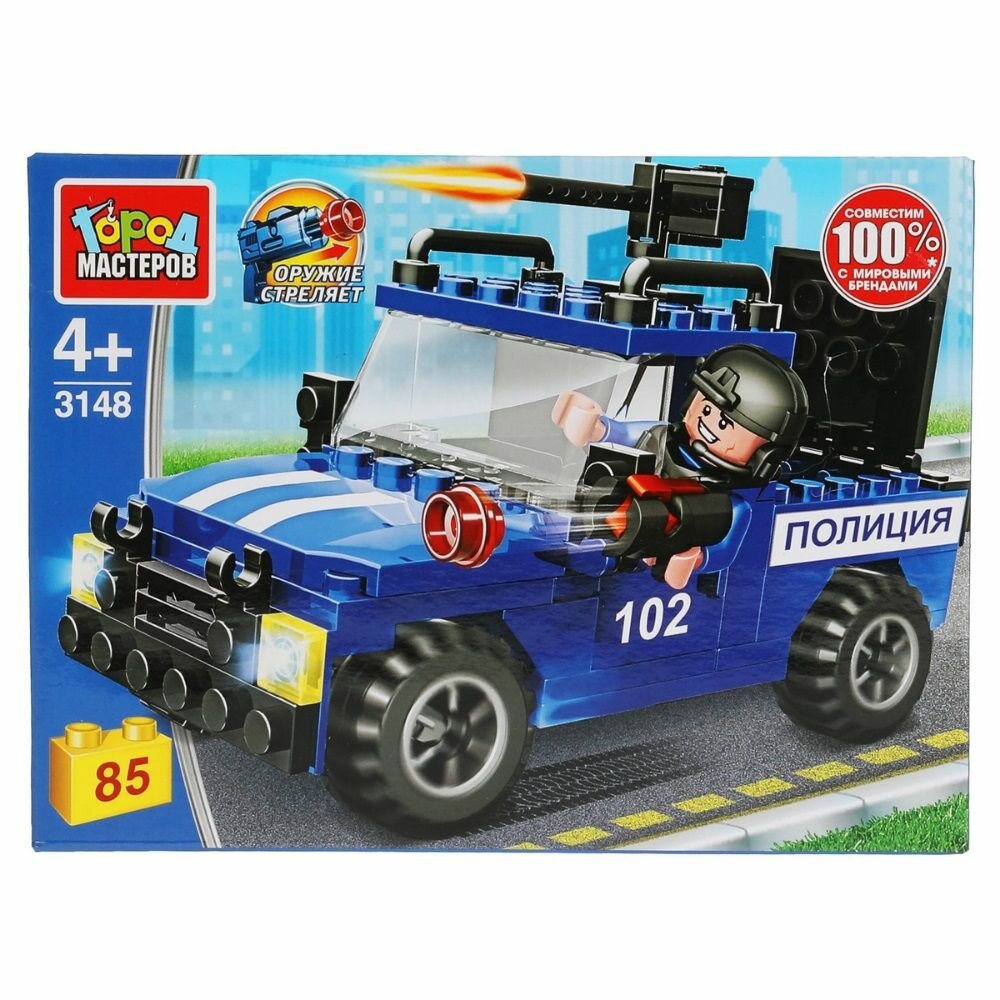 Купить Конструктор пластиковый Полиция: пикап для мальчика, 85 деталей, 1 фигурка полицейского, пистолет стреляет