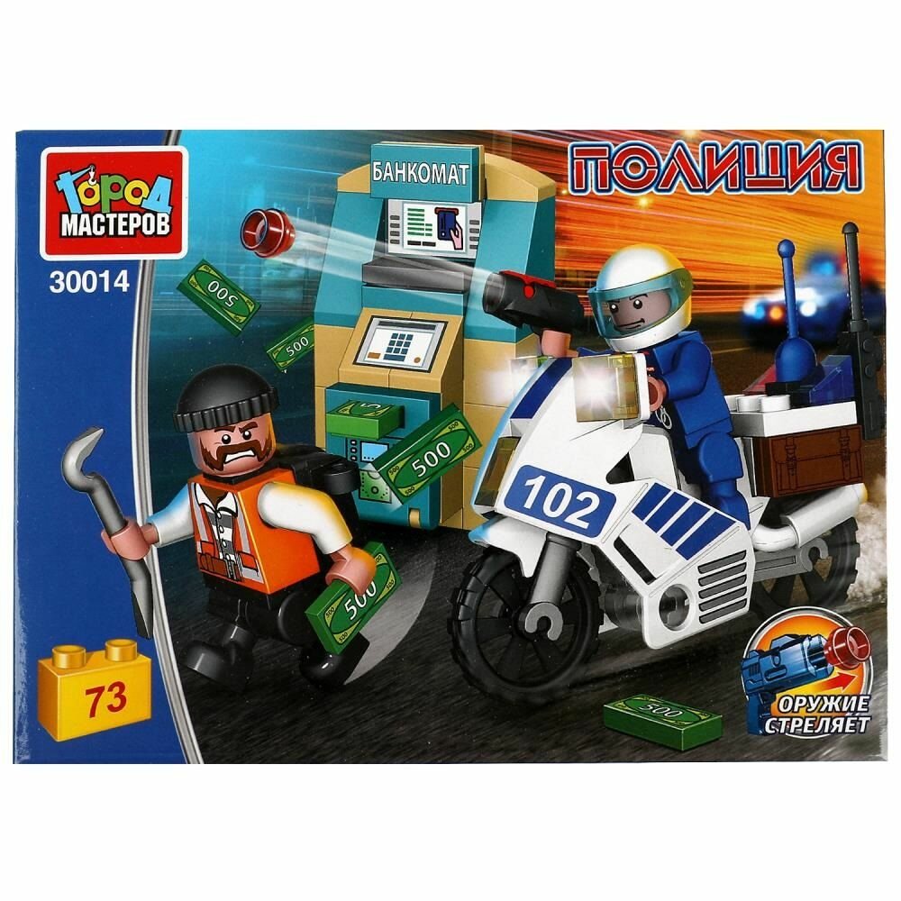 Купить Конструктор пластиковый Полиция: погоня за воришкой для мальчика, 73 детали, 2 фигурки: полицейский и грабитель, пистолет стреляет