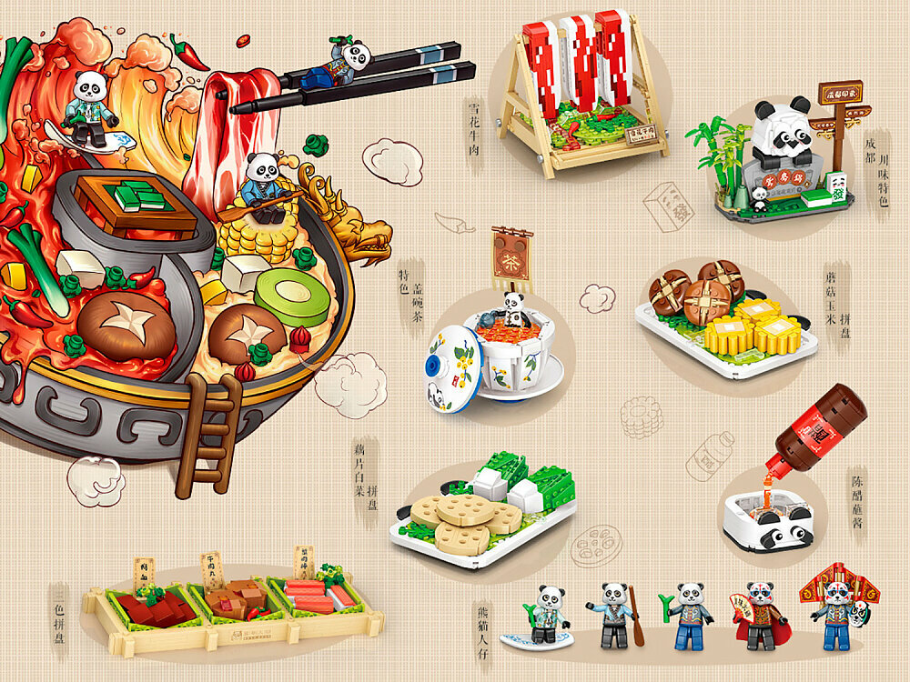 Конструктор LOZ 1072_MK "Сычуаньское блюдо", 4344 дет., фигурки панд в комплекте