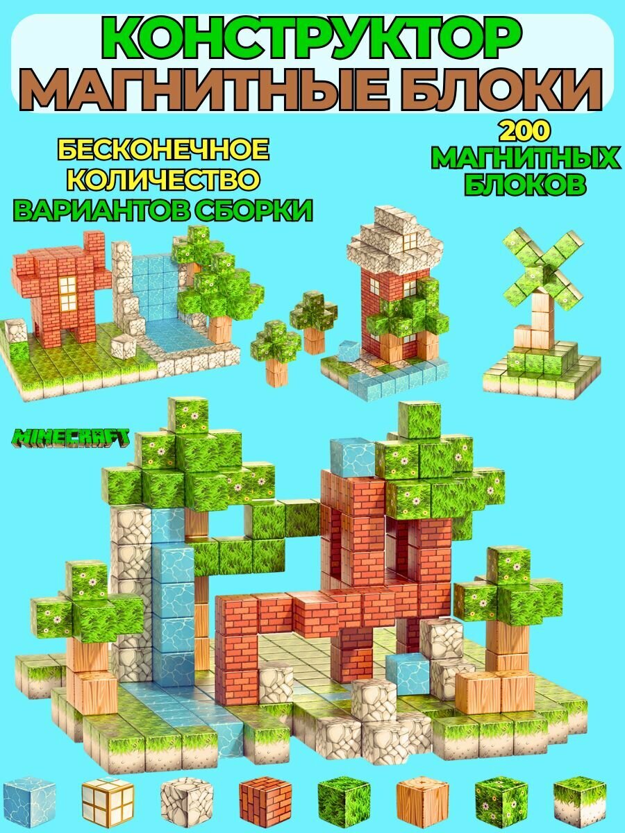 Купить Магнитный конструктор Майнкрафт 200 случайных блоков, minecraft