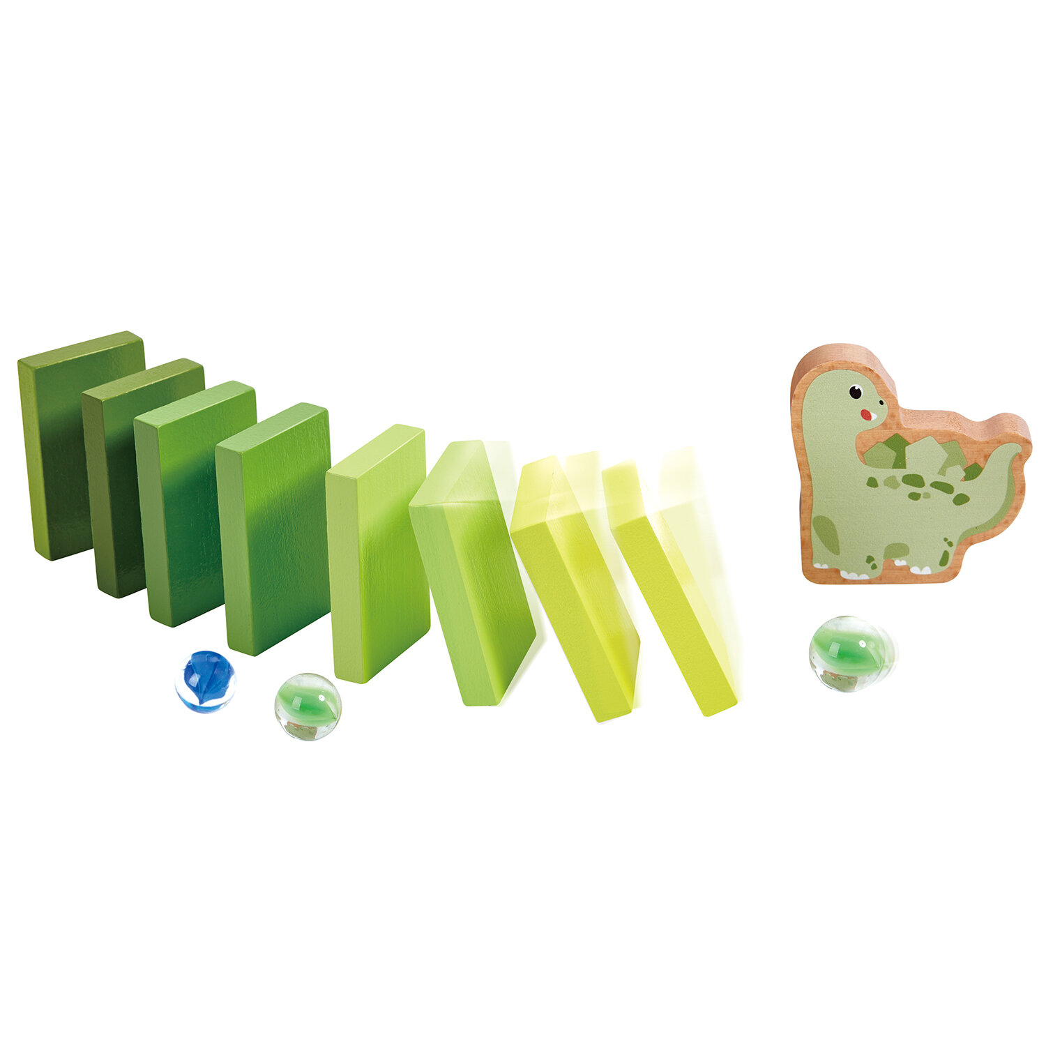 Купить Деревянный конструктор для детей Hape "Эффект домино" Приключения Динозавров, с шариками и фигурками E1112_HP