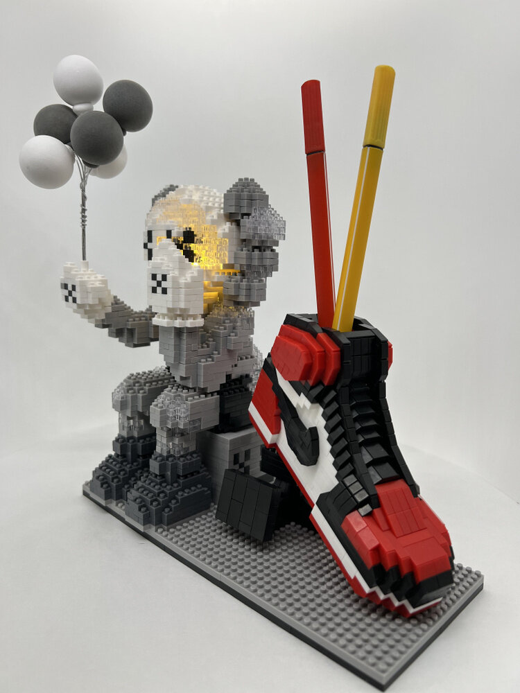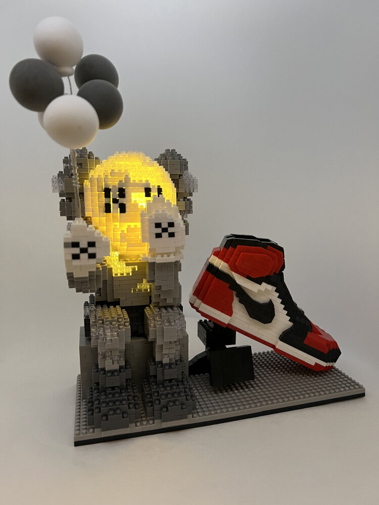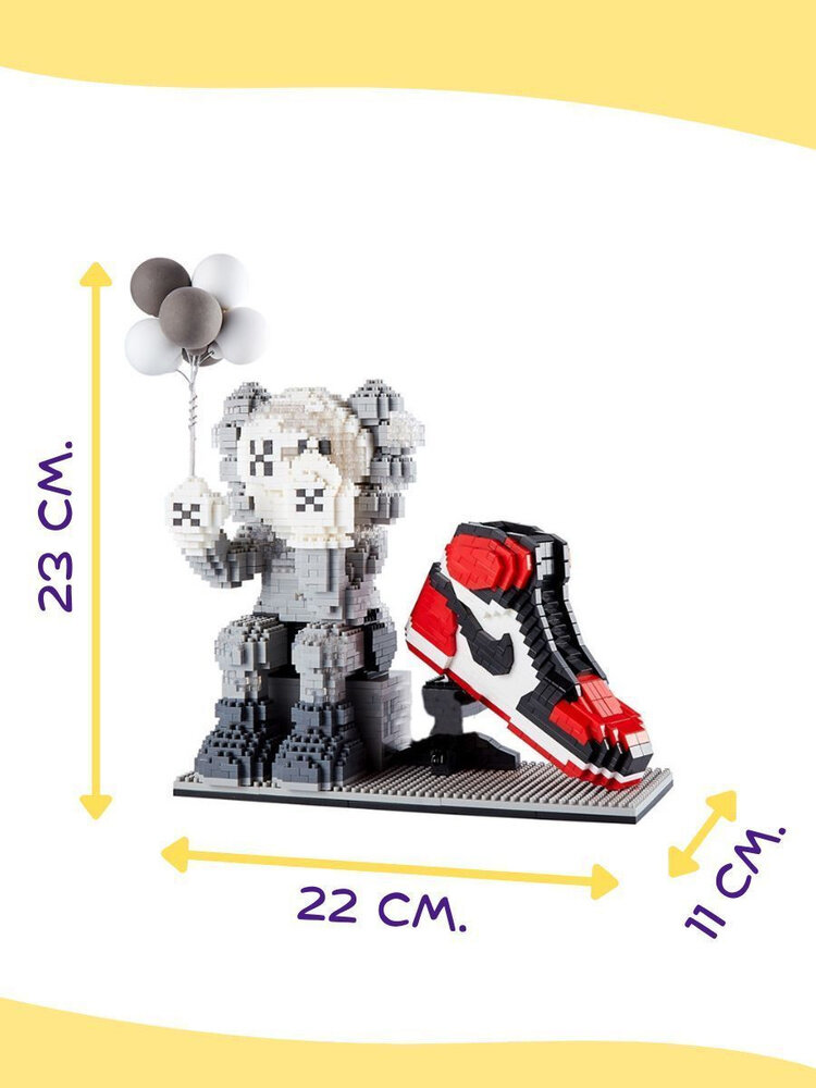 Купить Конструктор фигурка Kaws с подсветкой, светодиодный, 3D, мини блоки, 2199 деталей / Мишка с кроссовком