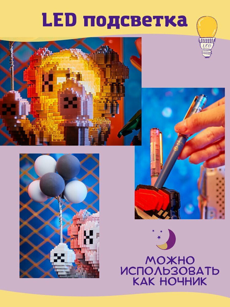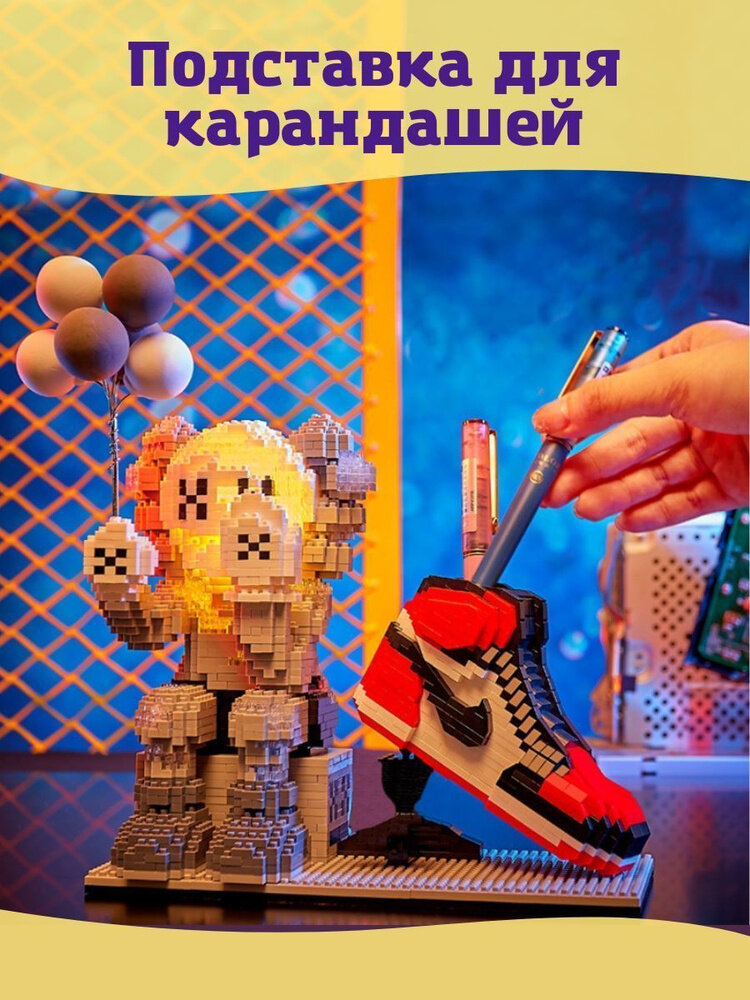 СохранитьКонструктор фигурка Kaws с подсветкой, светодиодный, 3D, мини блоки, 2199 деталей / Мишка с кроссовком интересное: