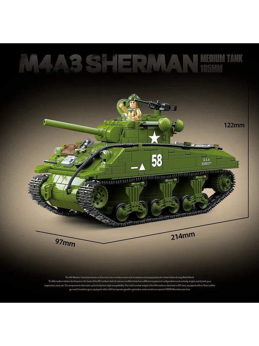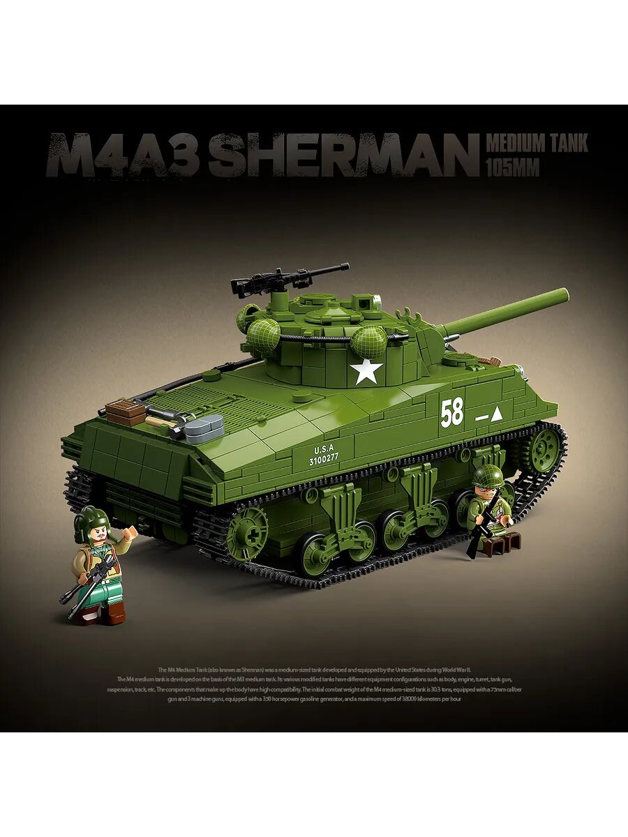 СохранитьКонструктор Quan Guan "Средний танк M4A3 Sherman, США", 1175 деталей интересное: