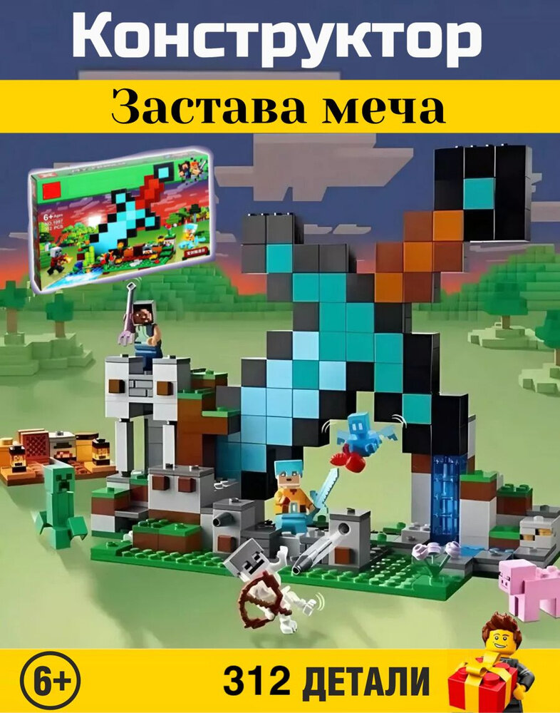 СохранитьКонструктор Застава меча Майнкрафт 312 деталей / совместим с лего / детский для мальчиков и девочек интересное: